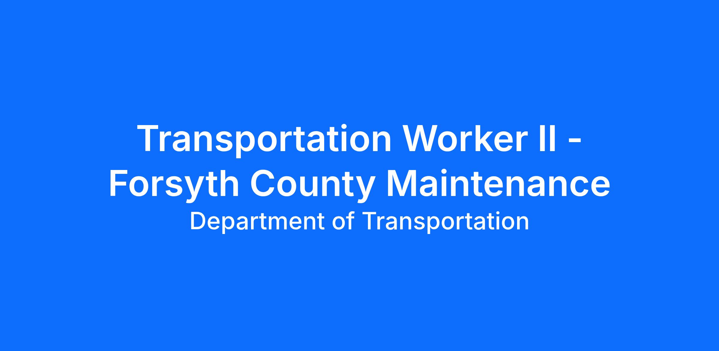 This Position functions as a Transportation Worker Level 2 within the Forsyth County Maintenance Unit. Work will consist of manual and equipment operational work in the maintenance of highways in Forsyth County. Work includes operating various types of highway equipment such as a patch truck, dump truck, sweeper, roller, and skid steer. Work also includes installing traffic control devices, installing temporary erosion control devices, flagging traffic, crack sealing, asphalt patching, installing pipe culverts, operating hand and power tools, monitoring tasks performed by inmates, clearing right of way and responding to emergencies such as snow and ice removal, downed trees, traffic control cleanup, etc. during normal business hours or during emergency call situations and scheduled night work.