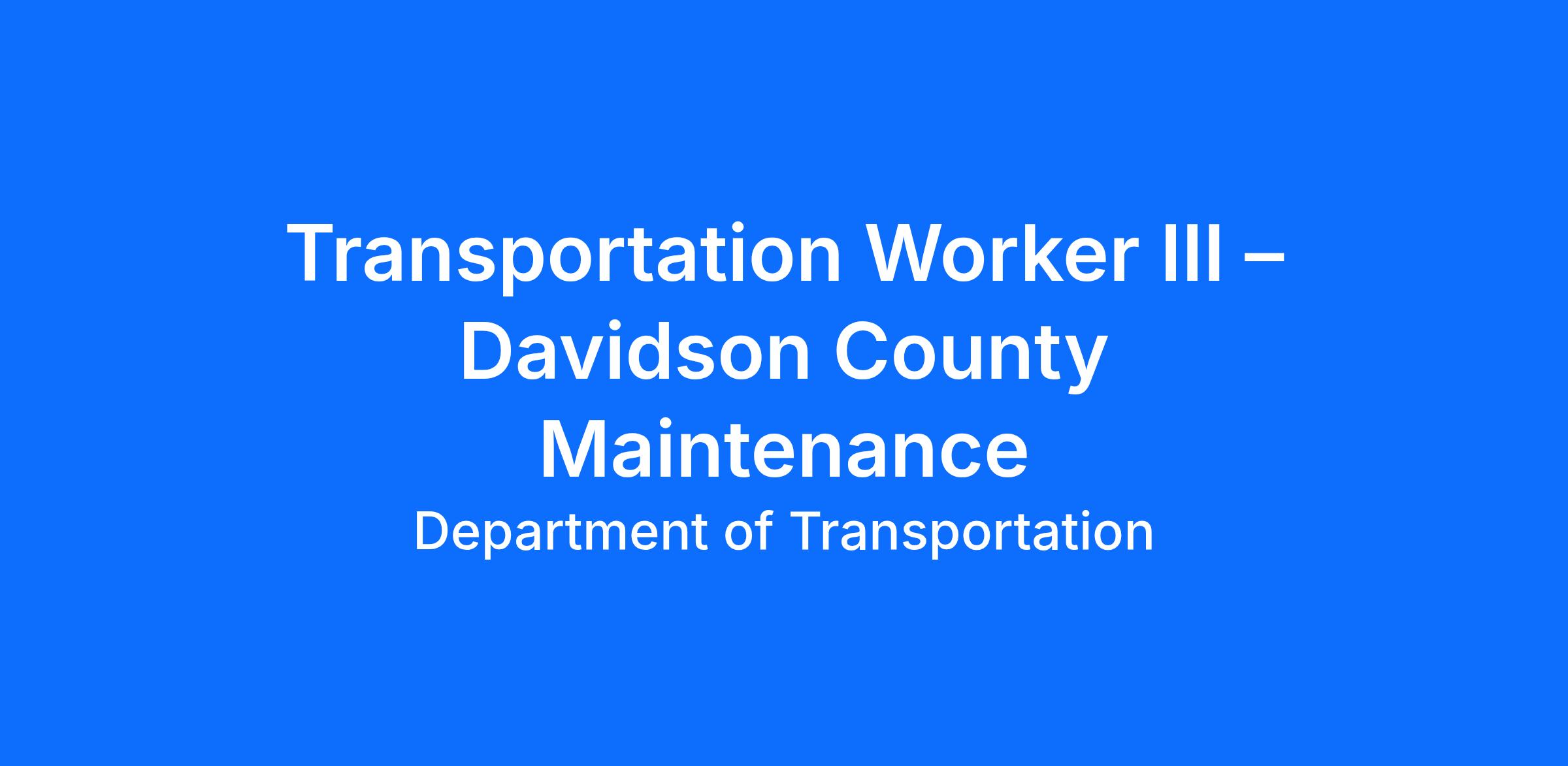 This posting is for a Transportation Worker III in the Davidson County Maintenance Unit. Work will consist of a wide range of progressively responsible maintenance tasks in the preventive maintenance, repair and construction of State Maintained roads and road features. Work will include pipe installation, shoulder and ditch maintenance, asphalt pavement repair, installation of traffic control devices, installation of erosion control devices, operating various pieces of construction equipment, hand and power tools. This position will also respond to emergency response situations including traffic accidents, snow and ice removal and other emergencies as they occur. This position will operate equipment such as a backhoe, track hoe, track loader, skid steer and dump truck. Employee will be subject to outside extreme environmental conditions, in addition to hazards at highway construction sites, including heavy equipment and highway traffic.