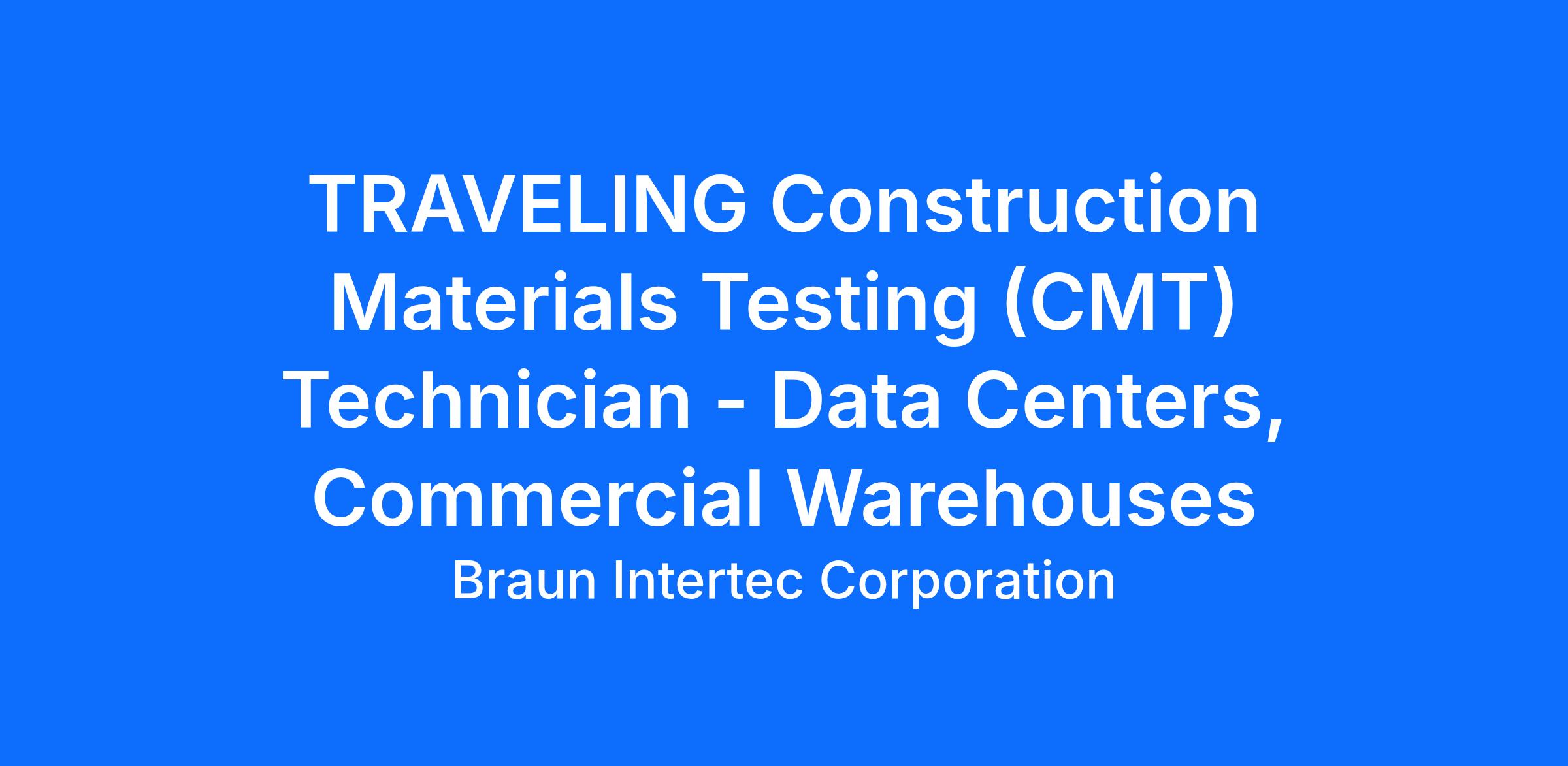 Braun Intertec is seeking experienced Construction Materials Technicians to join our team. This is a traveling position working on Data Centers, Commercial Warehouses and other remote projects.
