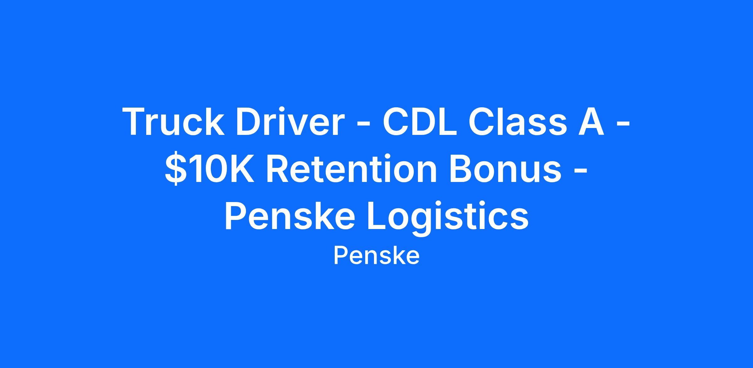 Truck Driver - CDL Class A - $10K Retention Bonus - Penske Logistics