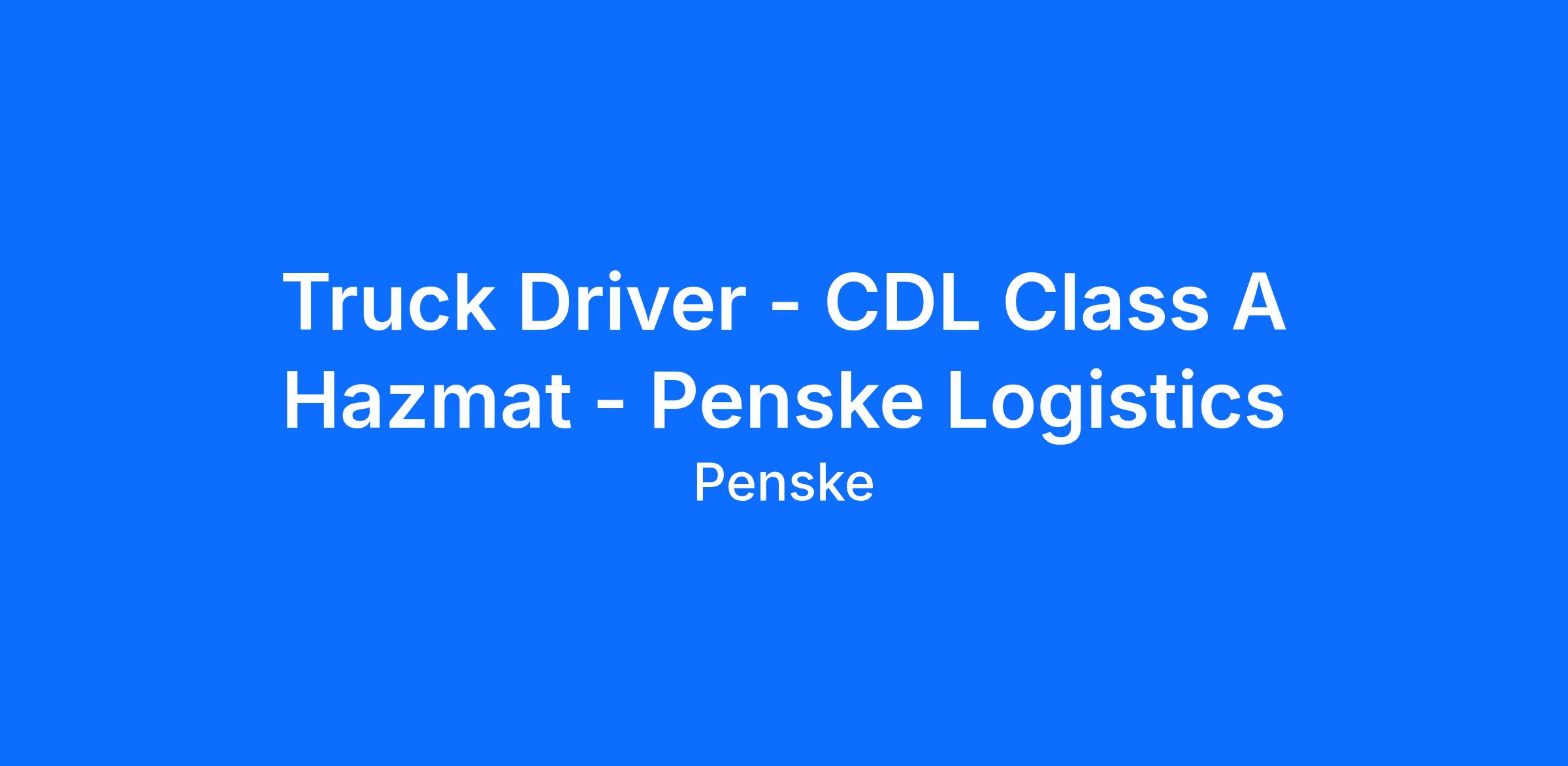 Penske is an Equal Opportunity Employer.