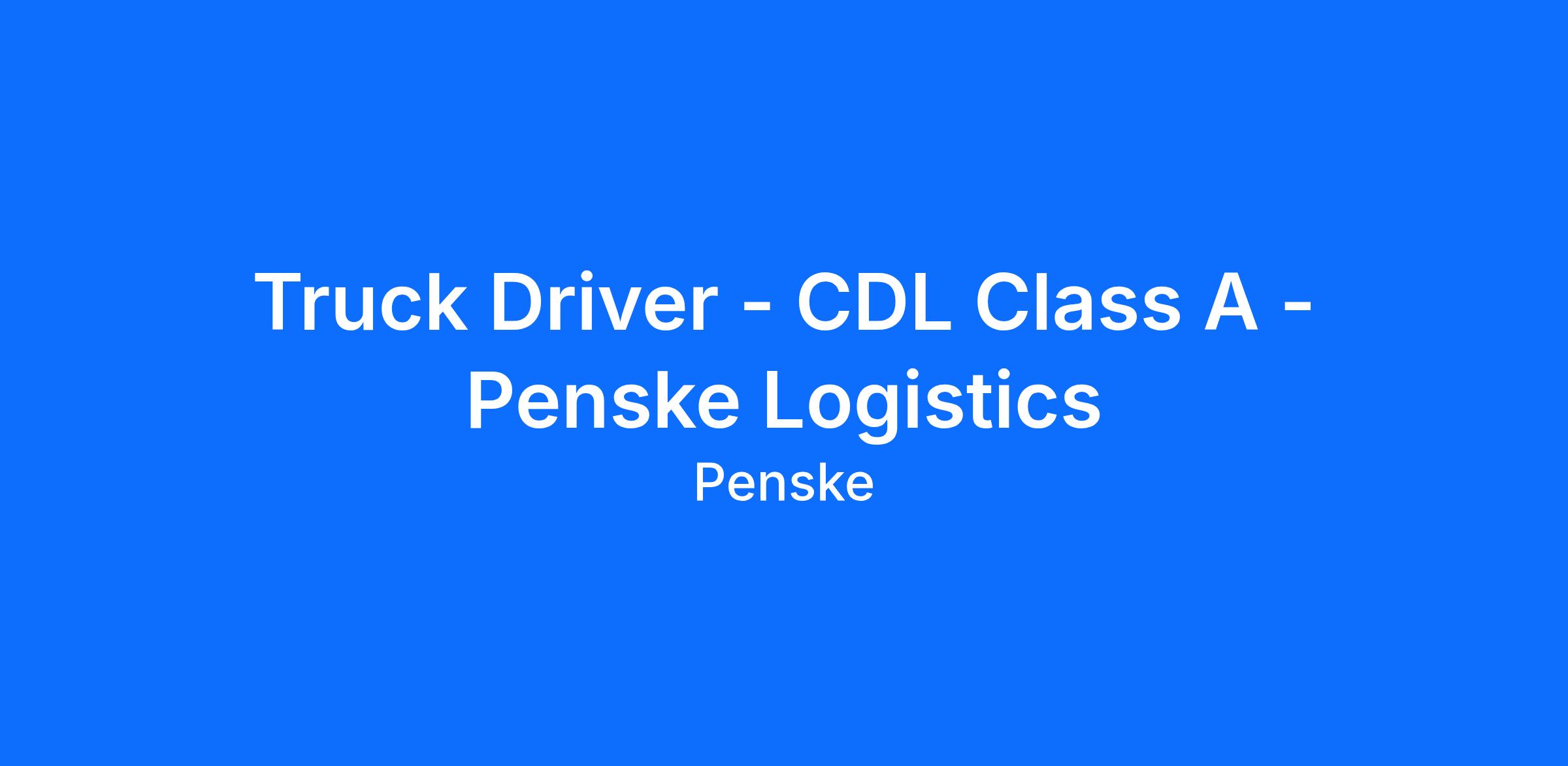 Penske is an Equal Opportunity Employer.