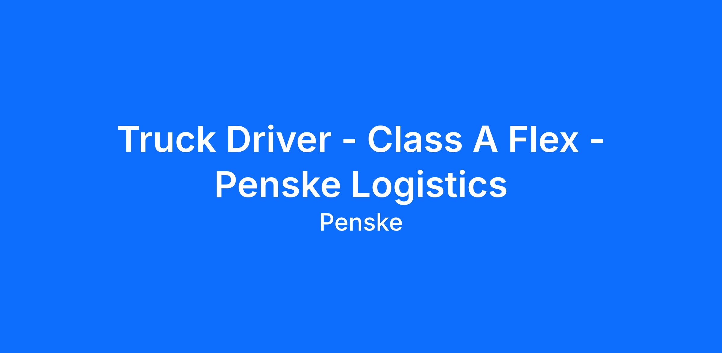 Truck Driver - Class A Flex - Penske Logistics
