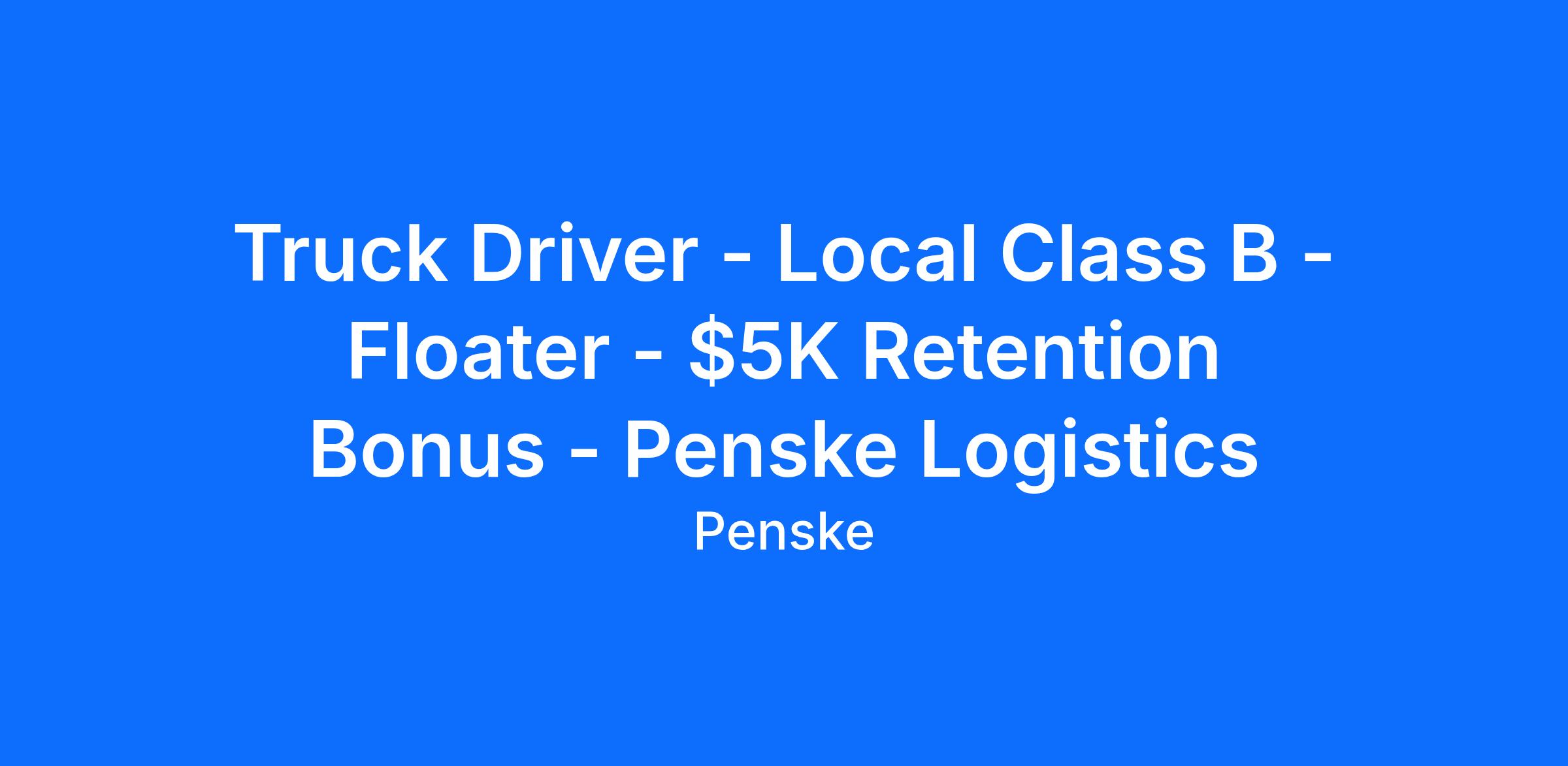 Truck Driver - Local Class B - Floater - $5K Retention Bonus - Penske Logistics