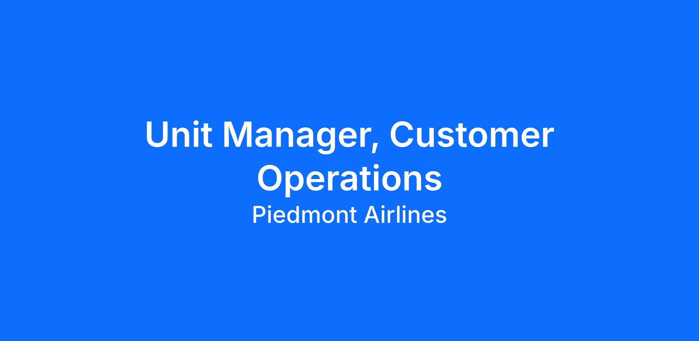 At Piedmont Airlines, our strength is the way we deliver industry-leading service to our customers and airline partners. To continue our standard of excellence, Piedmont is seeking a motivated, reliable leader to join our team as a Unit Manager, Customer Operations in our Ground Handling Department. The primary responsibility of the position is to manage the operational activities of the department in accordance with established policies and procedures in a unit where focus is on safe equipment handling and staffing. The Unit Manager coaches and provides career development to the team as part of managing a team with various duties to include supervisors and agents. The successful candidate will have proven success as a team leader with the ability to preplan manpower and equipment. This position will report to the Department Manager, Customer Operations.