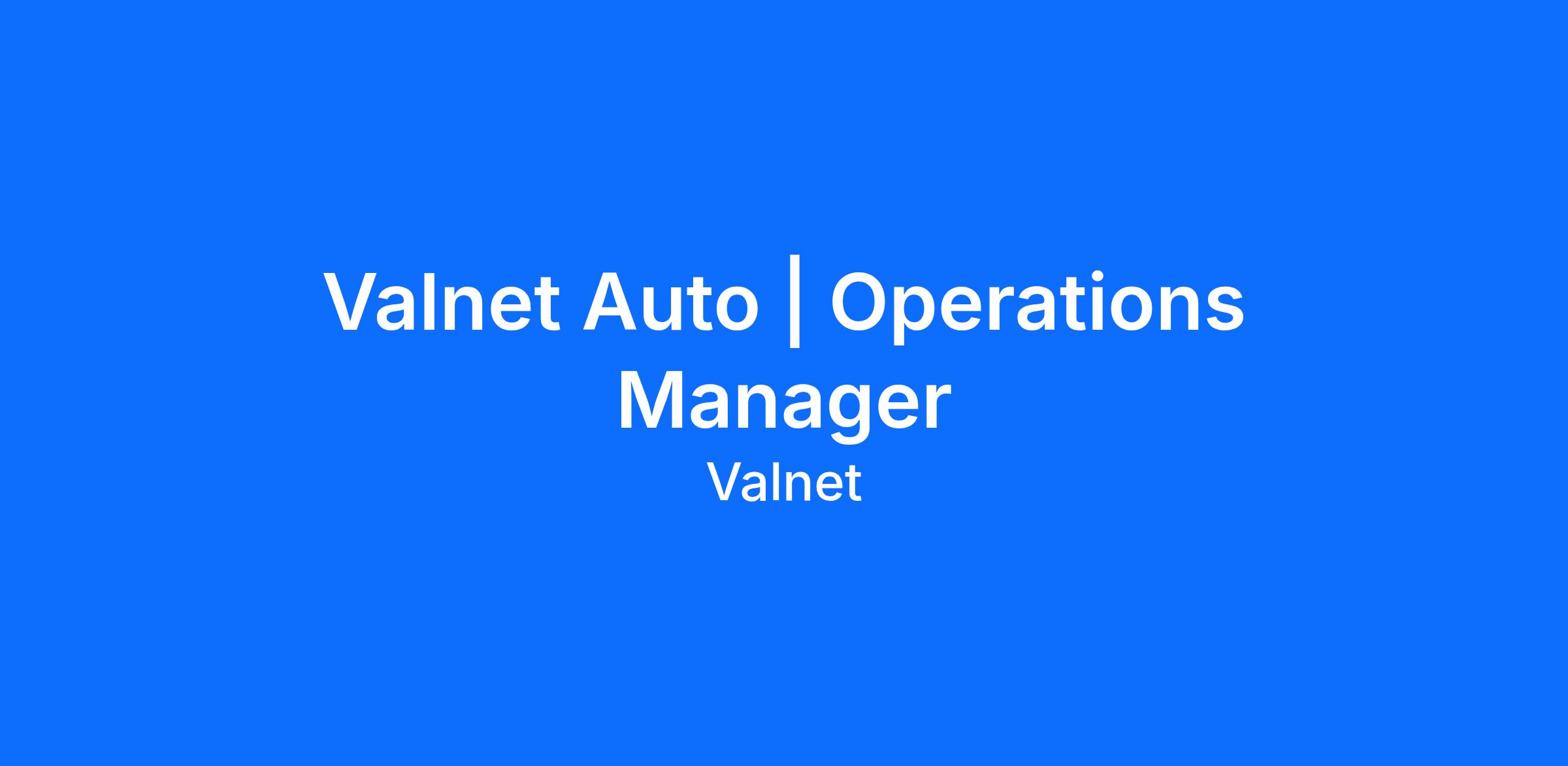 Valnet Auto | Operations Manager
