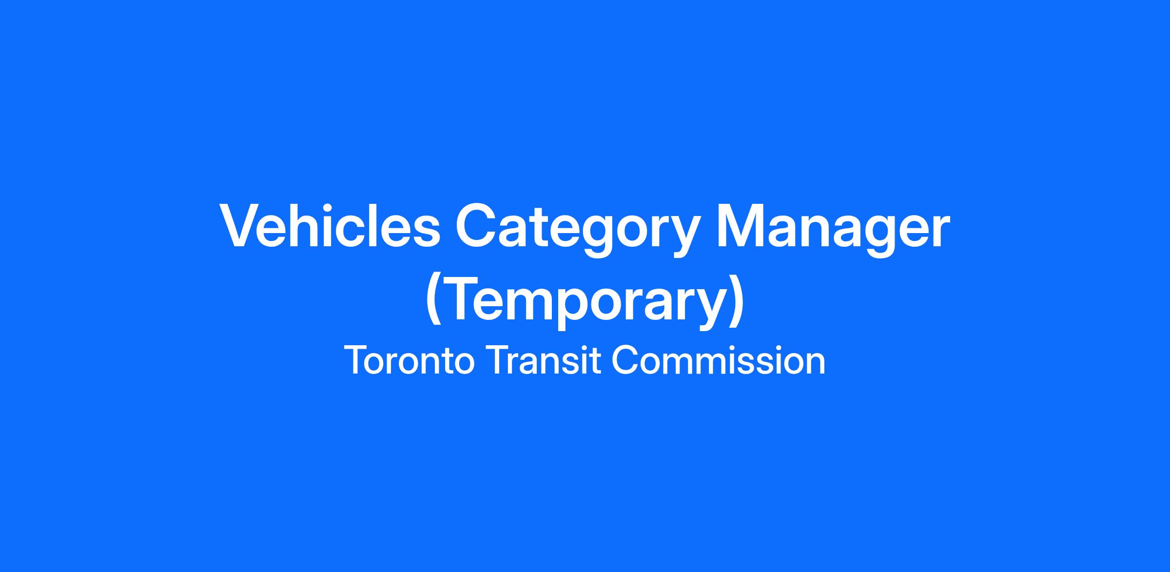 The TTC has one (1) year temporary opportunity within our Procurement and Category Management Department for a Category Manager in the Vehicles category. The incumbent will be required to plan and oversee pre-award procurement activities, including tendering and purchasing, providing supervision to staff, representing the department on special projects, and supporting the Director with workforce planning, budgeting, and performance analysis.
