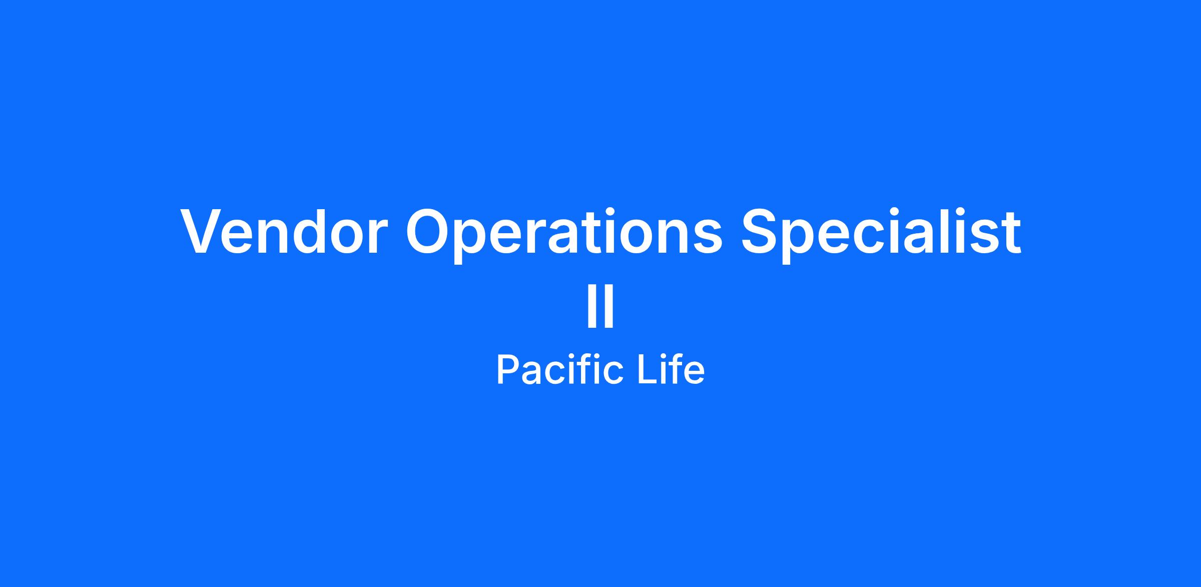 As a Vendor Operations Specialist, you’ll move Pacific Life, and your career, forward by partnering with Pacific Life's Strategic Sourcing Vendors to ensure business objectives and service commitments are met. You will fill a new role that sits on a team of 4 people in the Consumer Markets division. Your colleagues will include other Vendor Operations professionals.