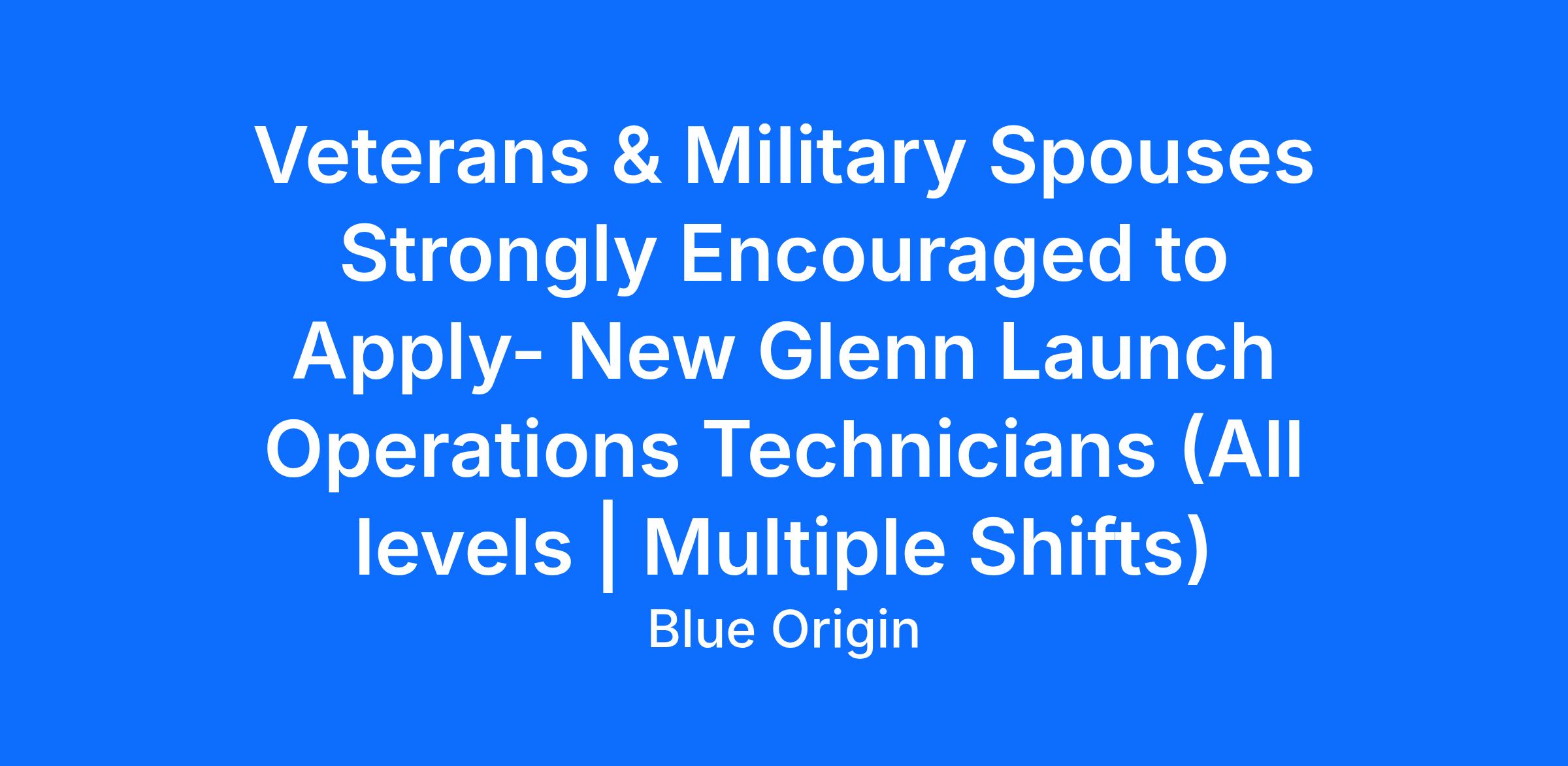 This role is part of Blue Origin Operations, which is comprised of Integrated Supply Chain, Test Operations, Safety, Quality, and Mission Assurance. This includes Manufacturing and Supply Chain support across all Blue Origin facilities.Blue Origin seeks highly talented technicians to launch the New Glenn rocket at Cape Canaveral Space Force Station. We are looking for teammates to help refurbish flown rockets, stack rockets and payloads, maintain and operate launch infrastructure, and ultimately participate in launching one of the largest rockets in the world. Successful candidates will bring relevant skills, experiences and certifications from aerospace, oil and gas, automotive, and related fields. We are looking for people who are fast and eager learners, extremely hard workers, problem solvers, and instinctive team players.