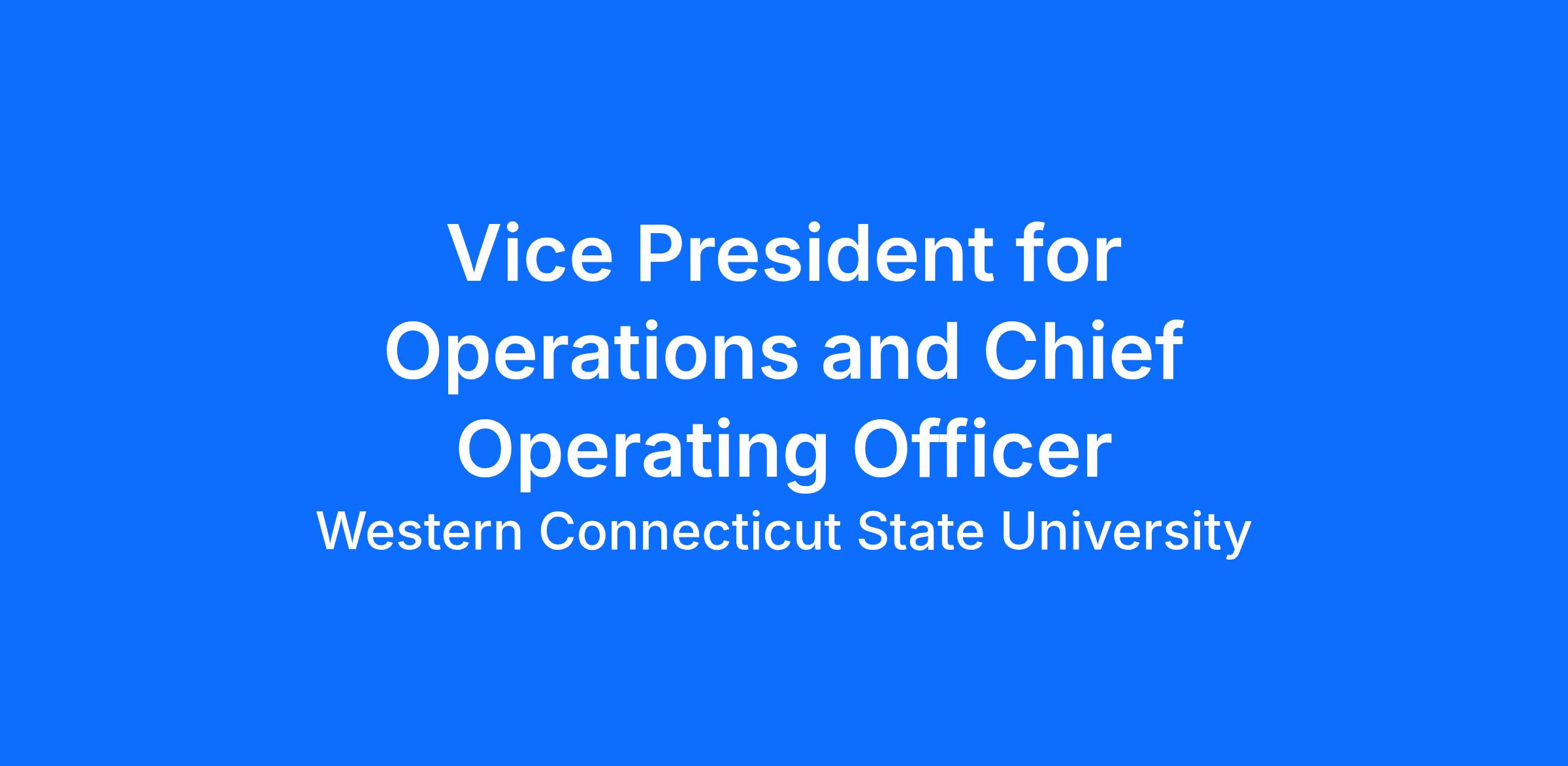 APPLICATIONS AND NOMINATIONSSalary & Benefits: The hiring salary range is $228,231 - $285,289 and is commensurate upon candidates' experience. WCSU offers a comprehensive benefits package. Additional information on benefits can be found at www.wcsu.edu/hr/benefits/. All employment, if offered, is contingent upon proof of citizenship or employability under the requirement of the Immigration and Control Act (IRCA) and the successful passing of a background check. WCSU is committed to providing a safe campus community. Background investigations include reference checks, a criminal history record check and a financial (credit) report or driving history check. Work Environment: Typical office environment with frequent presence across campus and periodic evening/weekend commitments for meetings, emergencies, and major university events. Availability outside normal business hours is required for critical incidents and operational continuity. Some travel may be required for system, state, or professional meetings. This position may be eligible for a flexible or hybrid work arrangement consistent with University needs and policy. Reasonable accommodation will be made for incumbents and candidates with physical limitations.Application Process: Prospective candidates must submit a cover letter, which includes the names and contact information for three (3) professional references and a resume. All materials should be submitted as PDF files. To apply, submit your materials to: https://westernconnecticutstateuniversity.applytojob.com/apply/SMvPh53qR6/Vice-President-For-Operations-And-Chief-Operating-Officer Questions may be directed to [email protected] referencing Vice President for Operations/Chief Operating Officer in the subject line. Review of applications will begin Tuesday March 31, 2026 and will continue until position has been filled. The University reserves the discretion to close application review at any time. Western is an Affirmative Action Equal Opportunity Educator/Employer