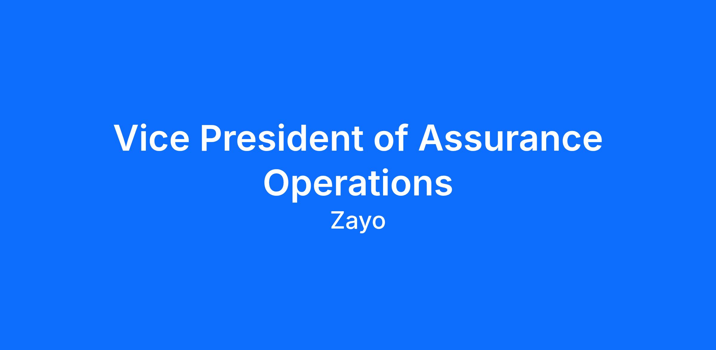 Zayo is seeking a Vice President of Assurance Operations to lead the vision and strategy for the evolution of change management, emergency restoration, and activations within our Networks & Technology (N & T) organization. This position will drive continuous improvement and uphold our commitment to delivering unparalleled service excellence; interfacing as needed on strategic customer accounts.