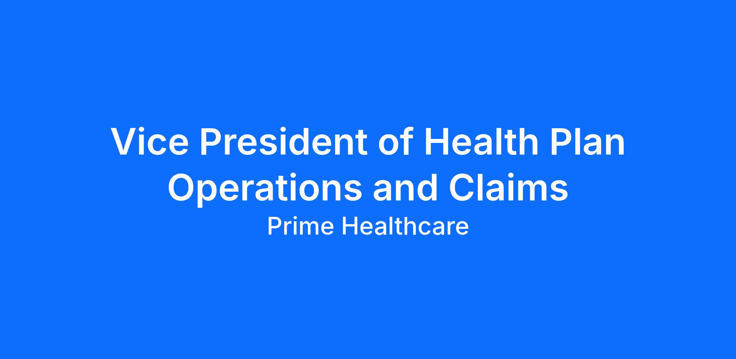 The Vice President of Health Plan Operations and Claims is responsible for the development and execution of Claim Operations strategies, end-to-end Claim process automation, optimization and management, identifying and leveraging technology and data to improve the quality and minimize process cost of Claims for all Prime Healthcare’s self-insured Employee Health Plans. Through in-depth audit and review of Claims data, the VP will identify financial savings across all aspects of the Employee Health Plans.