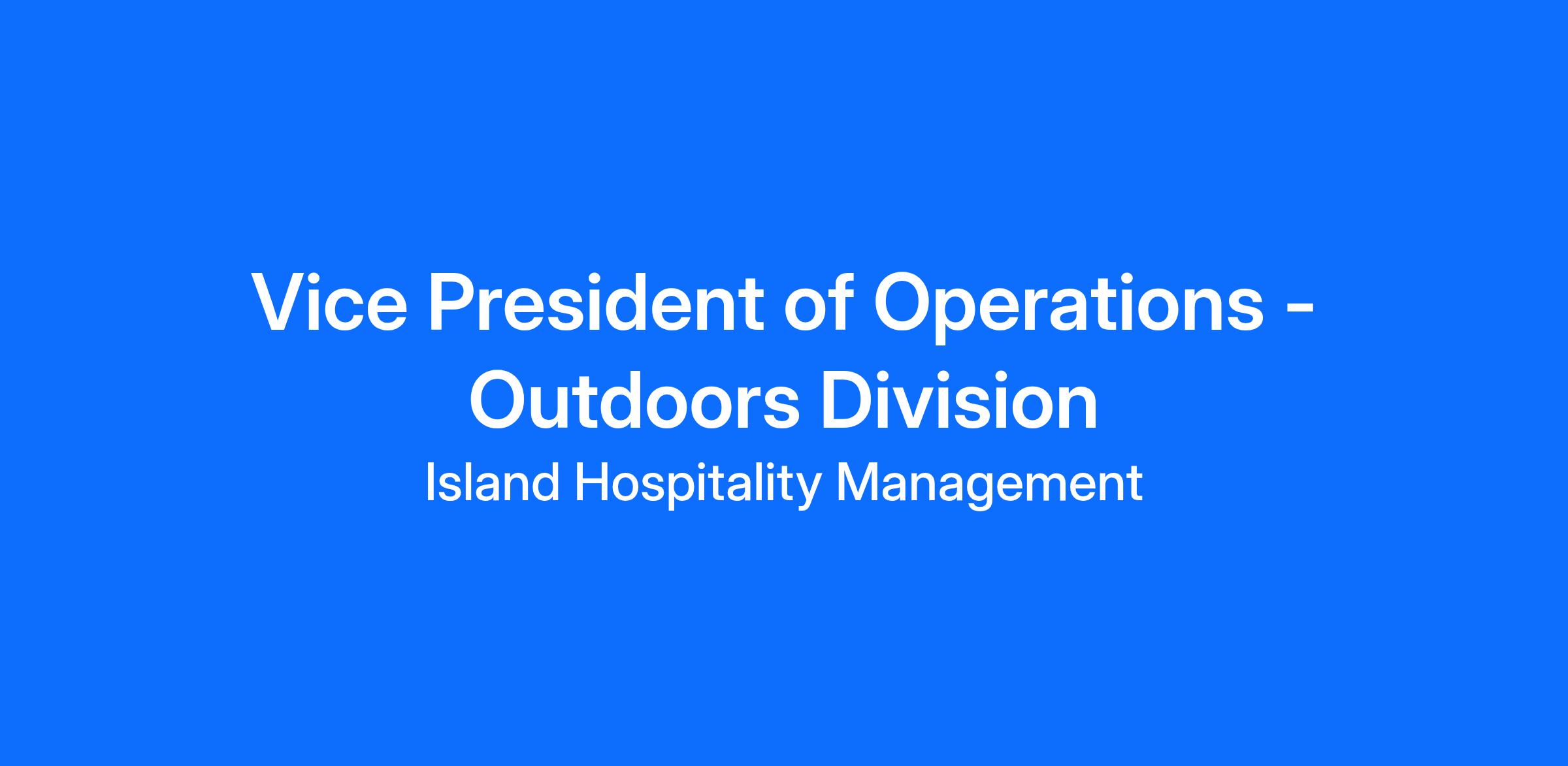 Island Hospitality Management is seeking a dynamic and experienced Vice President of Operations to oversee the expanding Outdoors portfolio. This strategic leader will report directly to the Divisional Vice President and play a pivotal role in driving operational excellence, guest satisfaction, revenue growth, and team development across multiple properties.