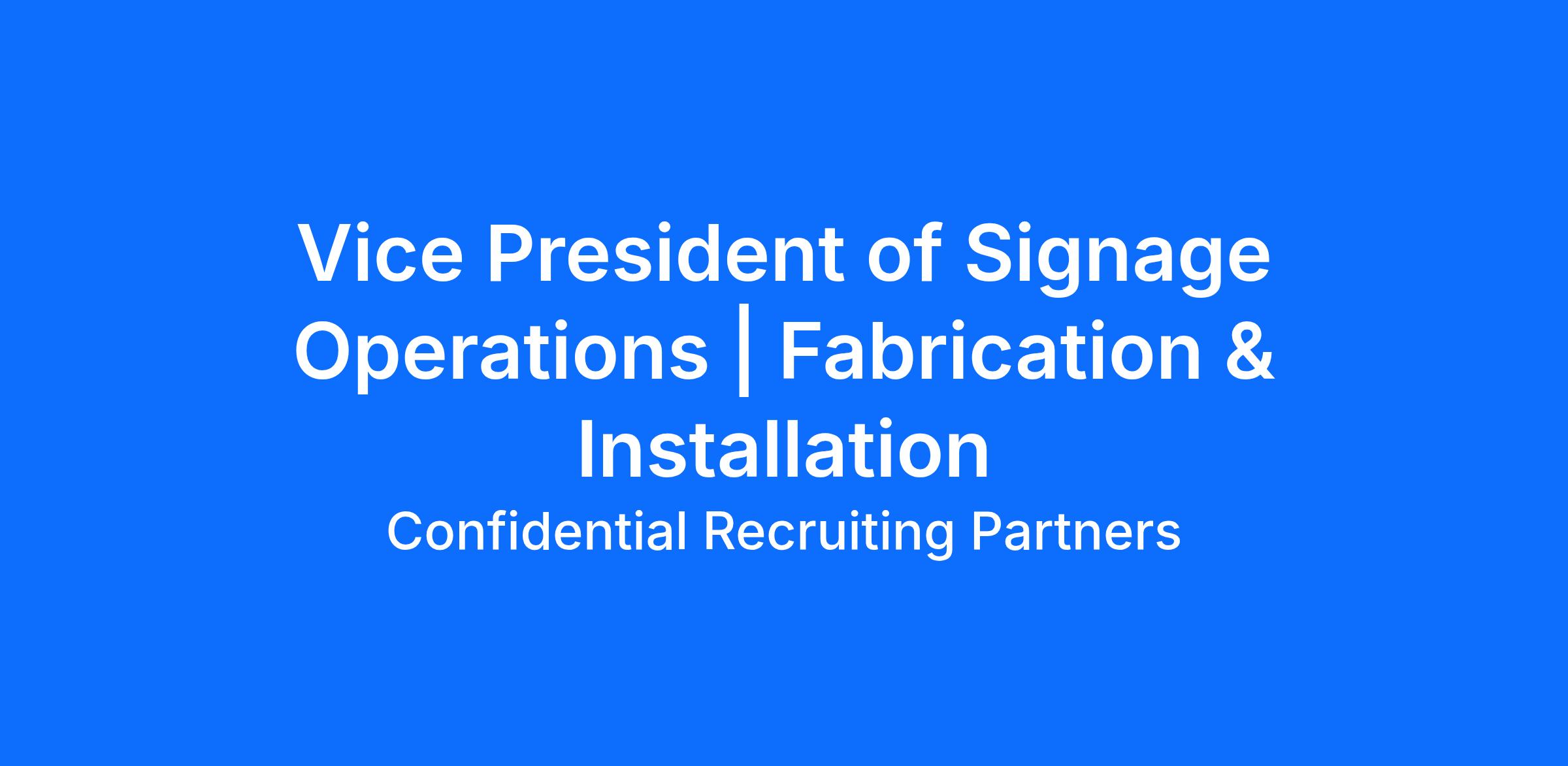 Our client is seeking a Vice President of Signage Operations to lead the full lifecycle of the company's signage division, including design, engineering, fabrication, production, installation, and project management. This executive role is responsible for division strategy, operational excellence, financial performance, and customer satisfaction. VP will modernize processes, elevate quality, and scale the signage business through strong leadership, innovation, and cross-functional alignment.