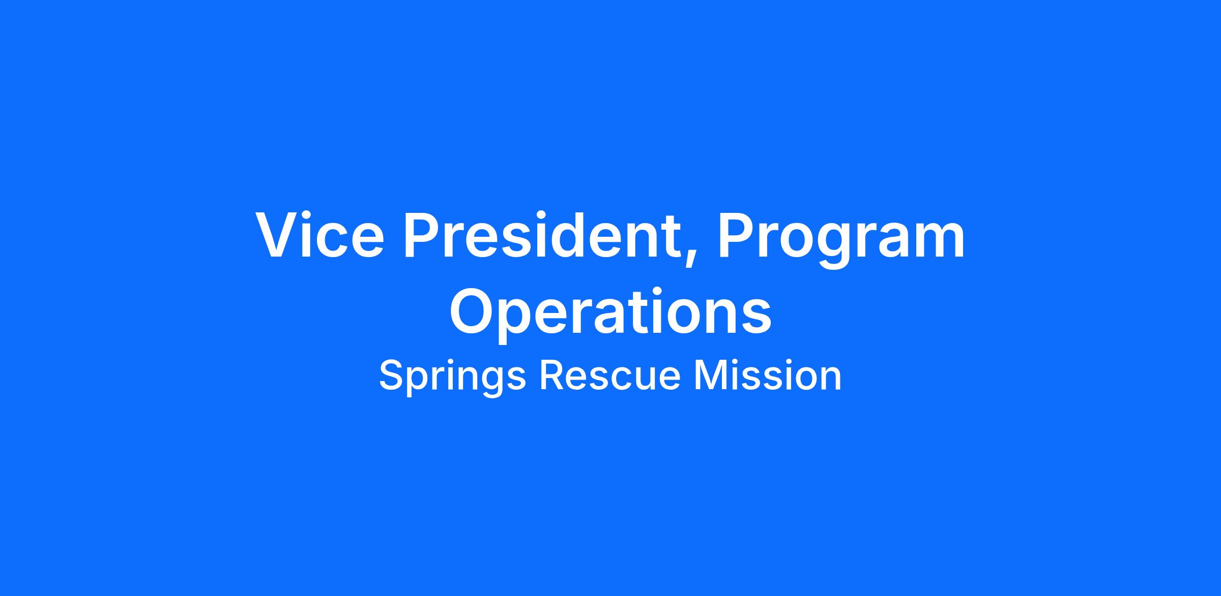 Springs Rescue Mission (SRM) considers every position one of ministry and a vital and valued part of our team. Therefore, it is essential that all employees of SRM have a personal relationship with Jesus Christ and subscribe to our Statement of Faith and Core Values. The Vice President of Program Operations is a senior operational leader and trusted partner to the CEO, responsible for ensuring SRM’s programs operate as a cohesive, disciplined system that meets people at their point of need and moves them forward toward stability and independence beyond SRM’s services. This role carries the operational weight of a complex, 24/7, donor-funded mission—bringing clarity, flow, and accountability across shelters, recovery pathways, housing navigation, workforce development, safety, hospitality, and daily campus operations. The ideal person in this role brings structure without rigidity, accountability toward outcomes, and a deeply human approach to leadership, integrating teams so SRM delivers humane, fundable, and sustainable impact that is scalable.