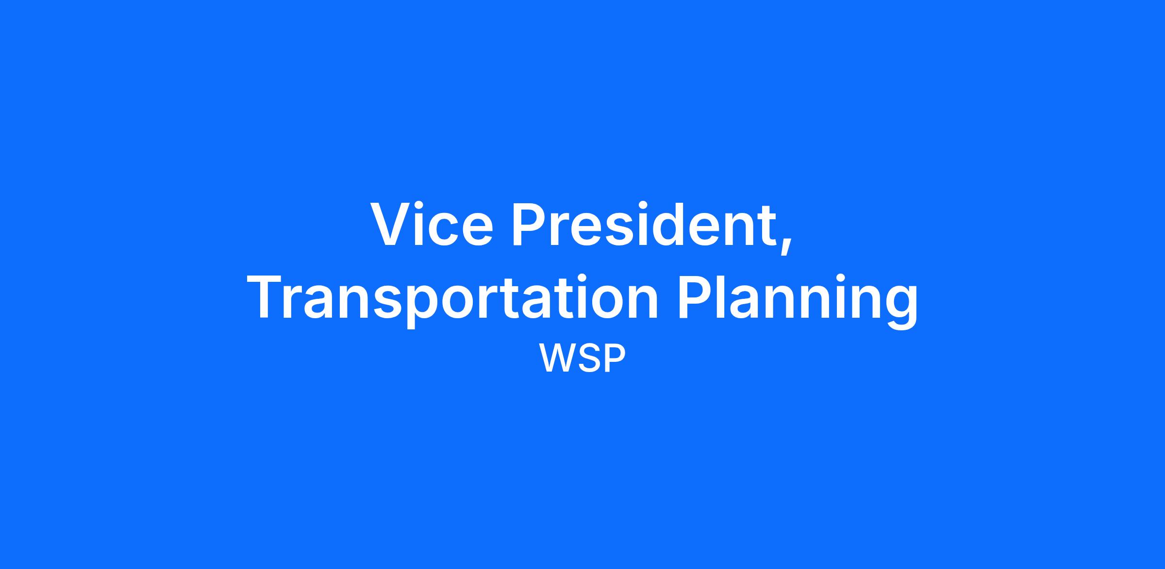 WSP is currently initiating a search for a Vice President of Transportation Planning for our Detroit, Michigan office.
