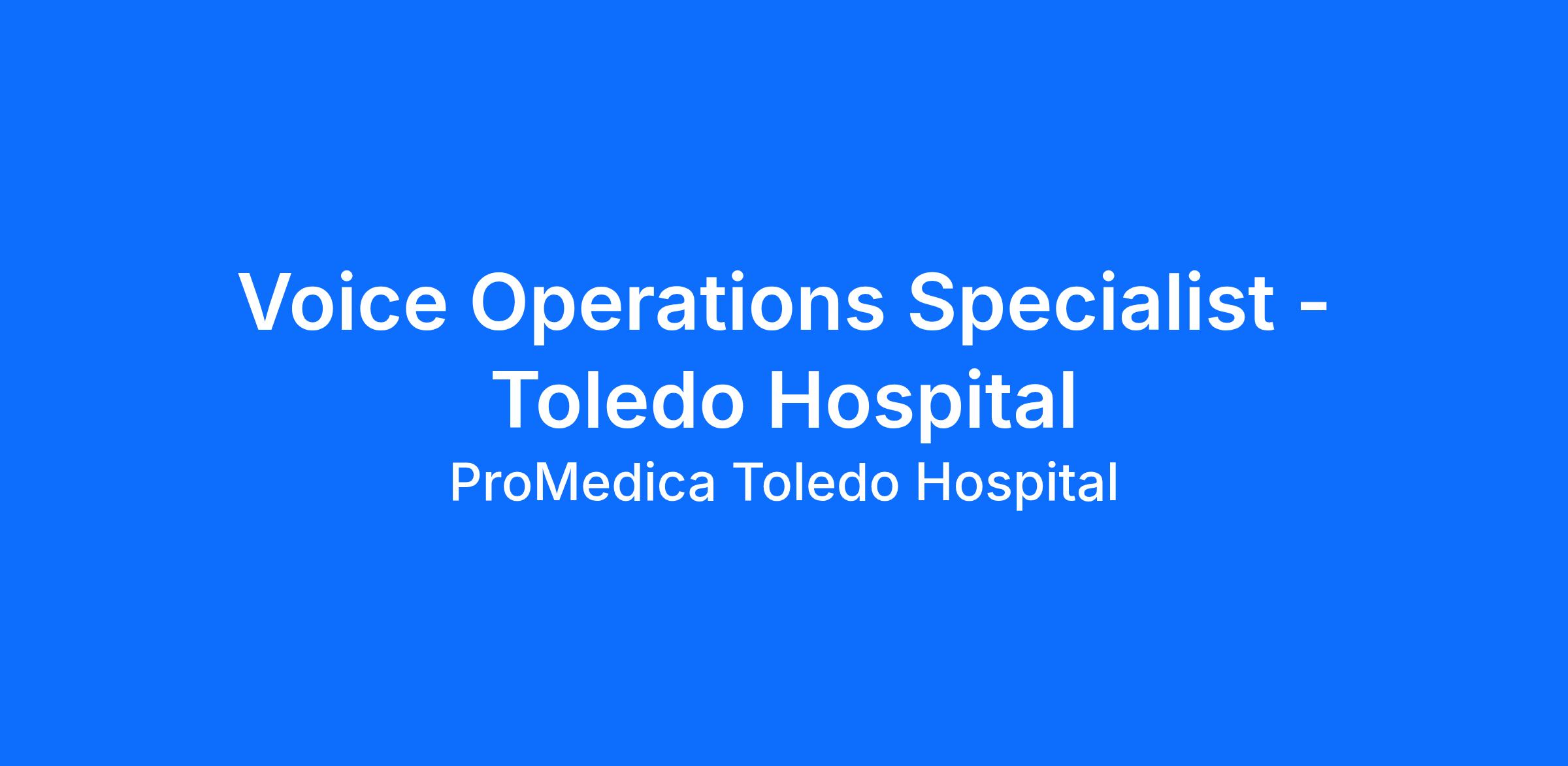 As a Voice Operations Specialist, you will serve as the main communication contact for ProMedica hospitals.