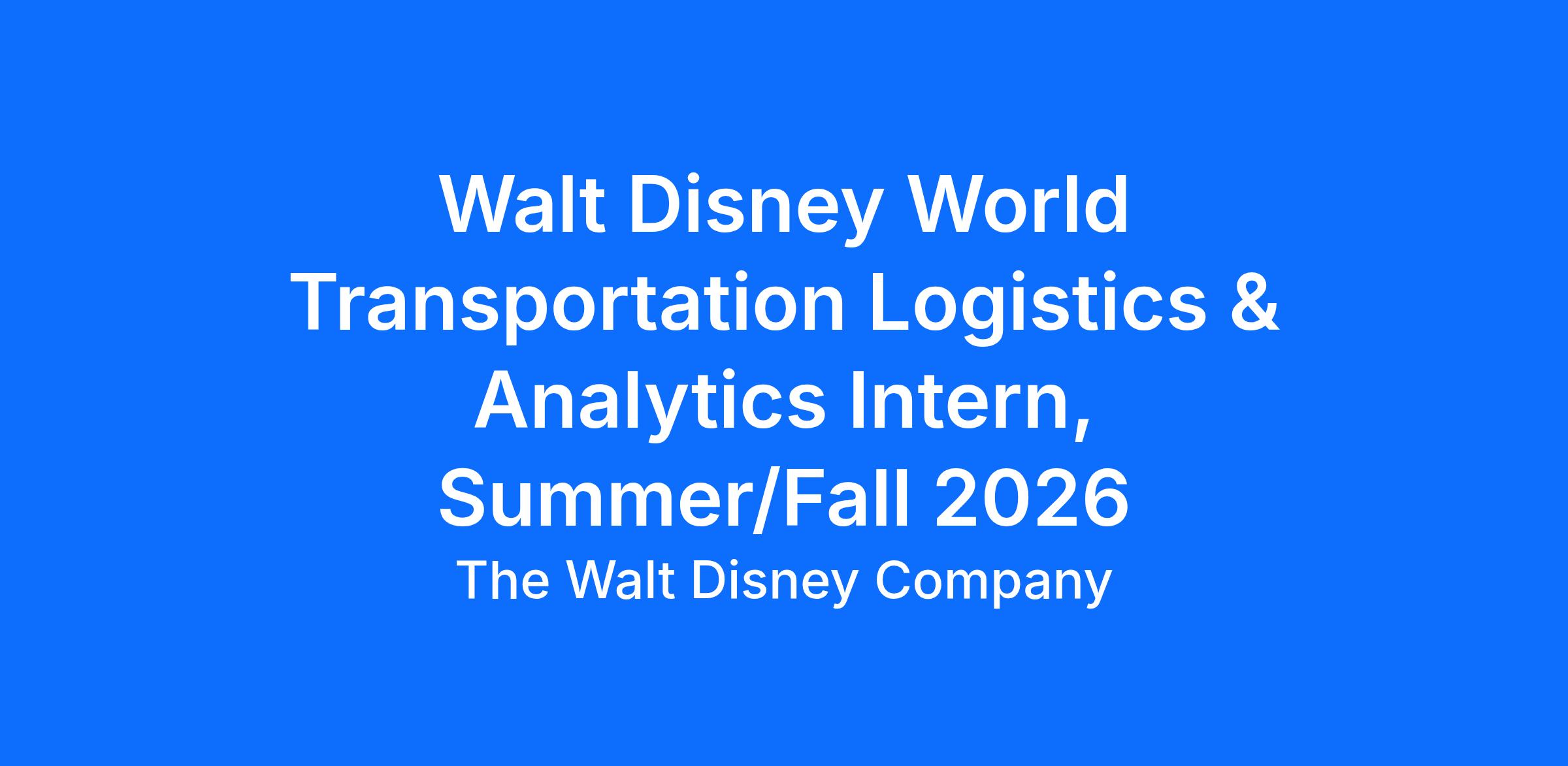 Walt Disney World Transportation Logistics & Analytics Intern, Summer/Fall 2026Req ID:
