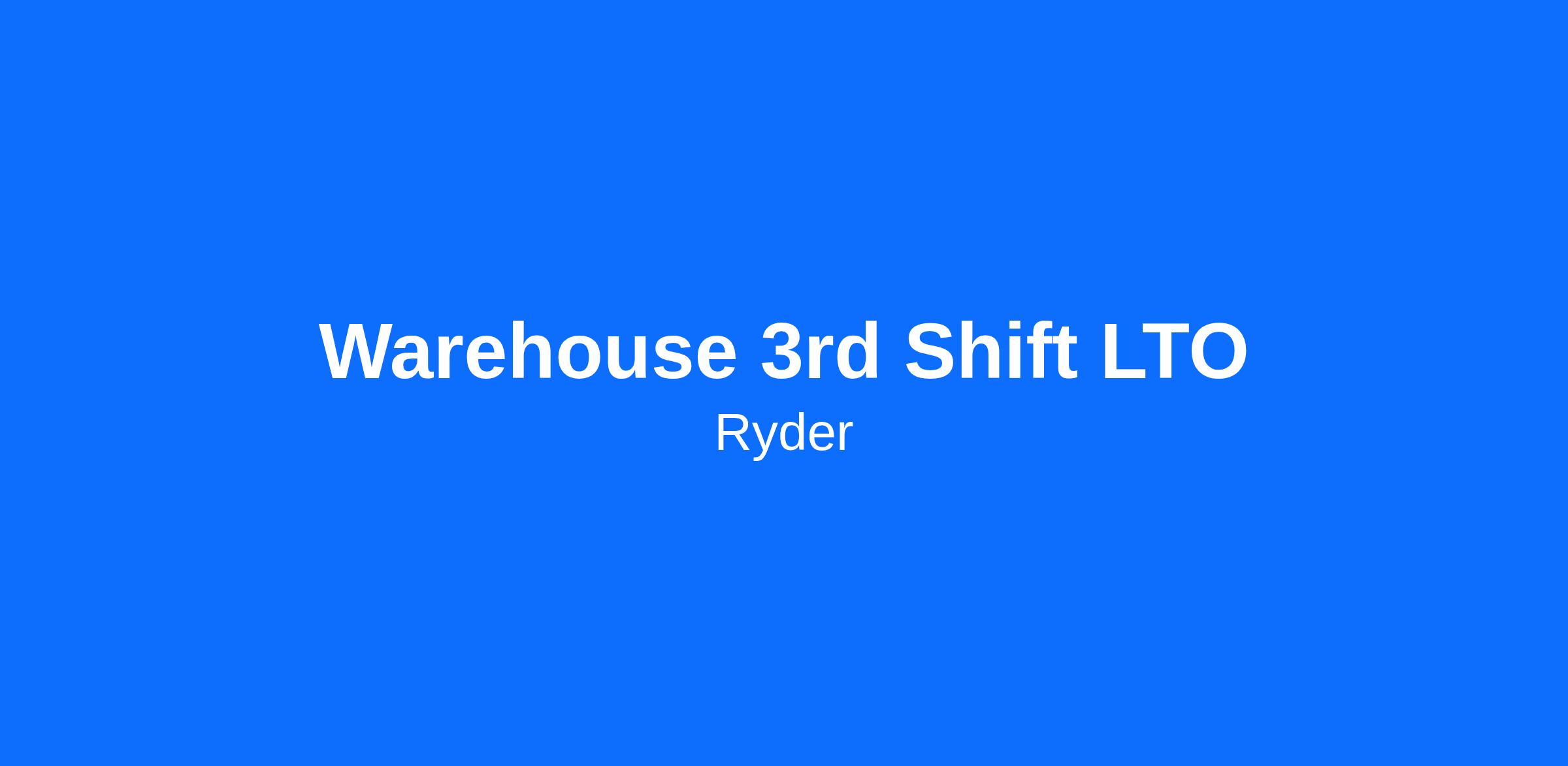 Immediately hiring a Permanent Full Time Warehouse3rd Shift LTO to support our Facility at Ryder in Indianapolis, Indiana