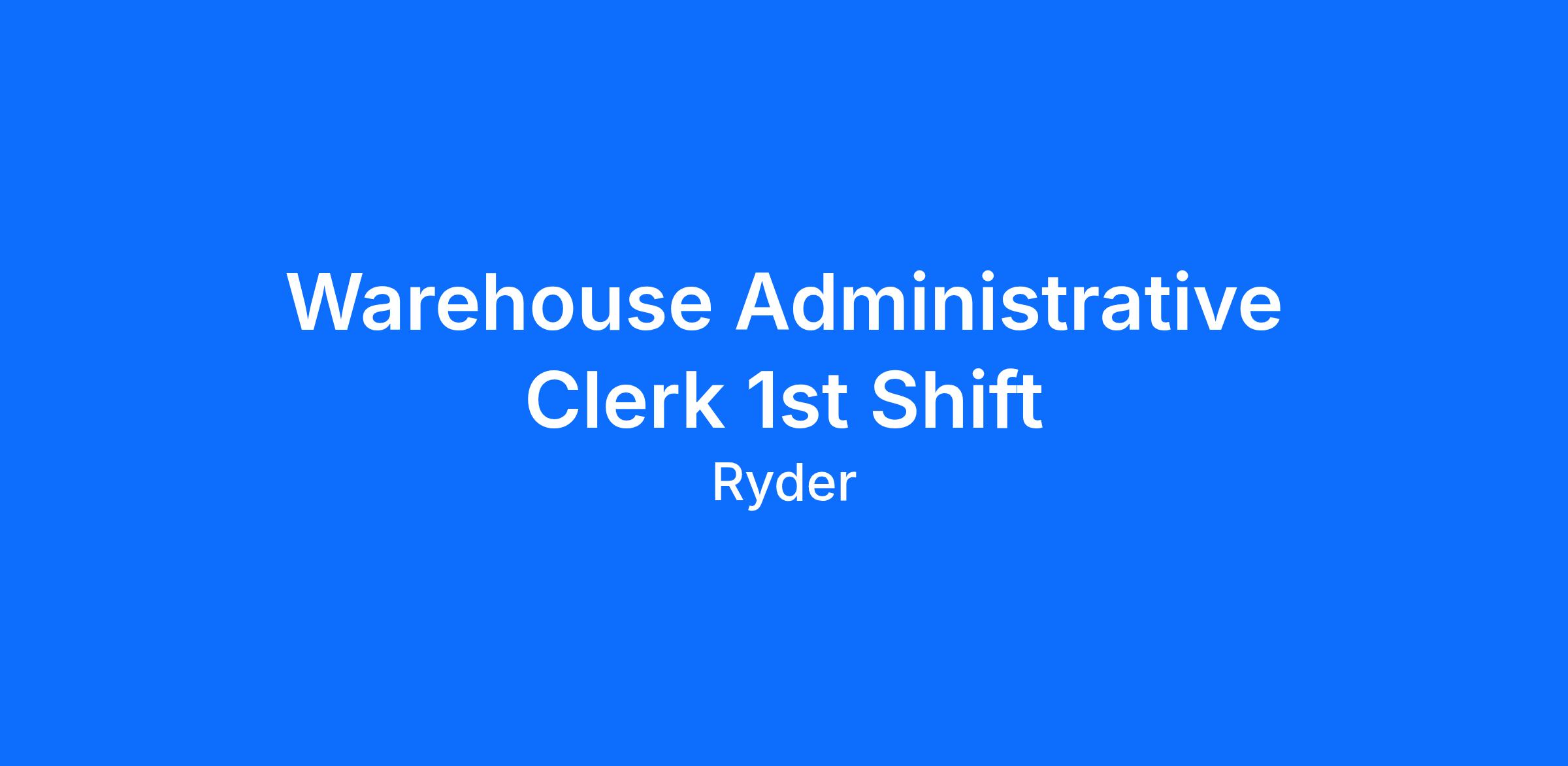 Ryder is immediately hiring a Warehouse Administrative Clerk in Grovetown, Georgia
