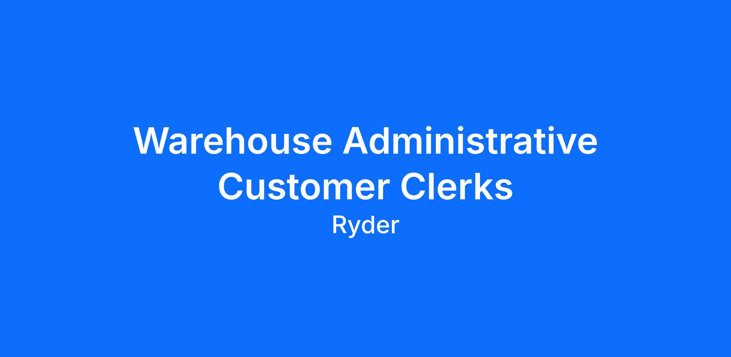 Ryder is hiring Permanent Full Time Administrative Customer Coordinators in Tracy, CA
