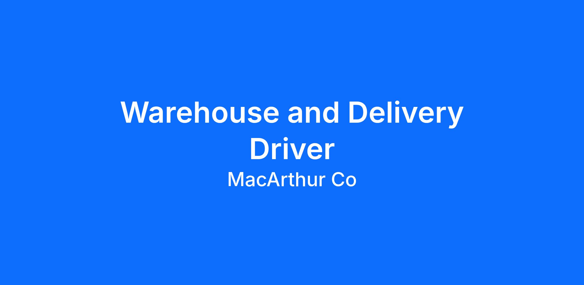 This Warehouse and Driver job posting is a summary; more details of responsibilities are provided during interviews.