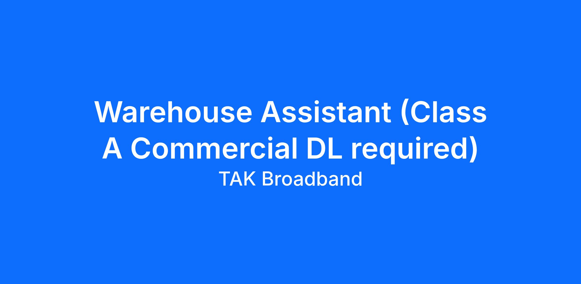 Warehouse Assistant (Class A Commercial DL required)