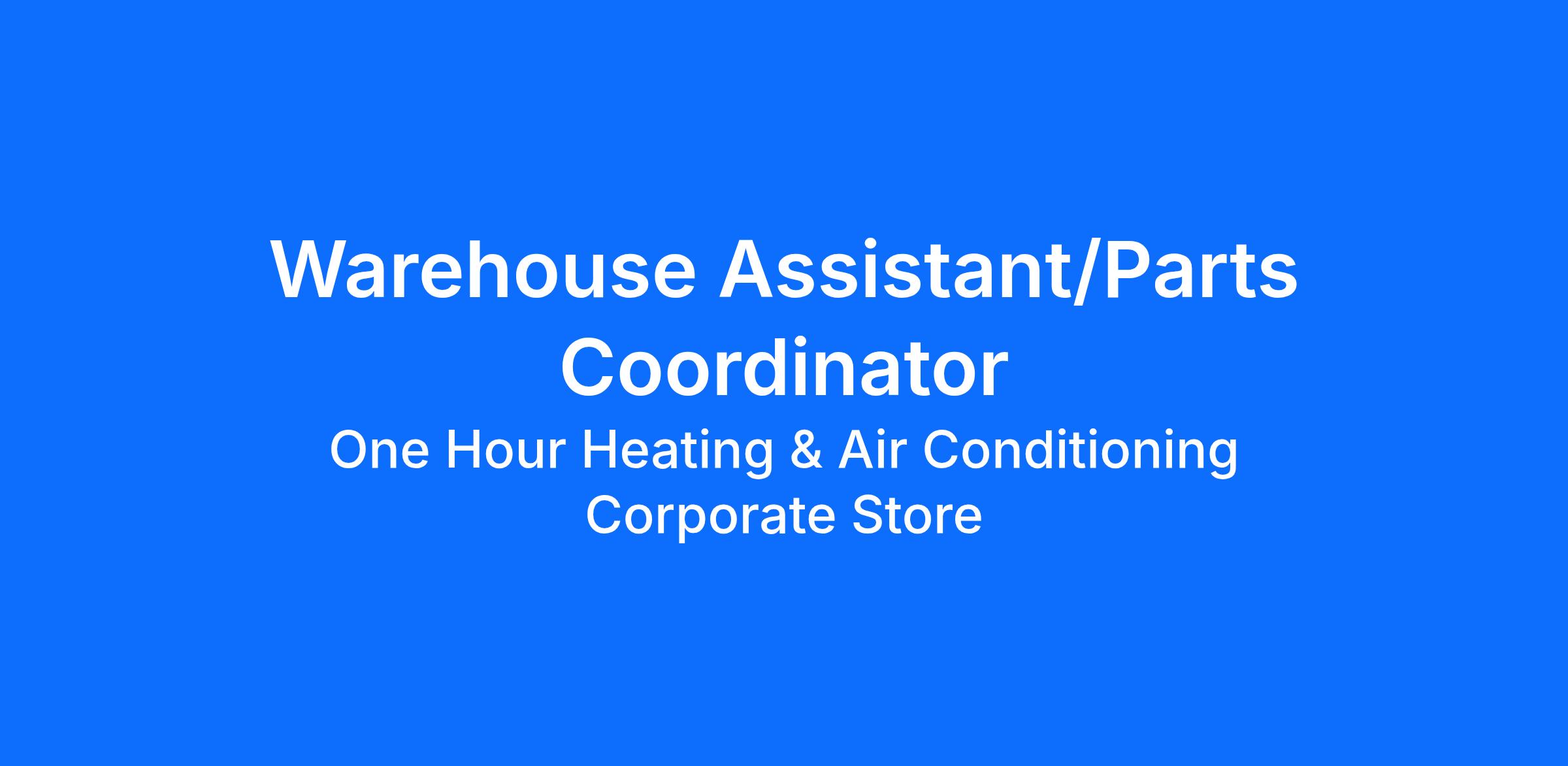One Hour Heating & Air Conditioning, an affiliate of Authority Brands, is the premier heating and cooling specialist in the Pompano Beach area. We are seeking a Warehouse Assistant/Parts Coordinator who will assist in purchasing and stocking parts and equipment, inventory, and warehouse organization.