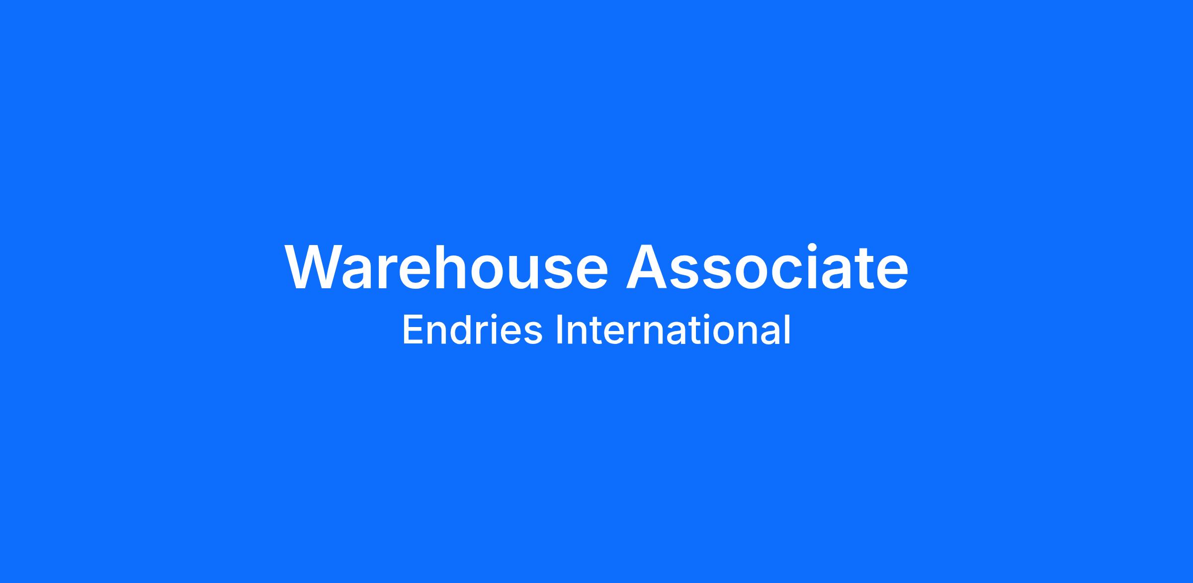 At Endries, our Warehouse Associate primary goal is to get our shipments accurately counted and out the door to our customers on time! Our team is growing and we're looking for individuals that would love to come here and help us with process improvement in this area so that we can service our customers in the most efficient ways possible. Do you enjoy troubleshooting and coming up with new solutions?!? Come join our team!