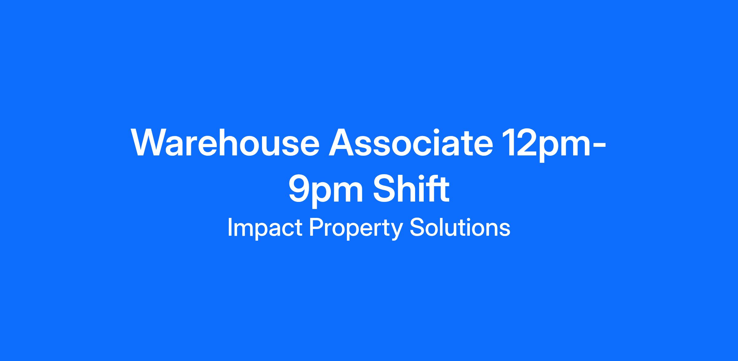 Warehouse Associate: Monday-Friday 12pm-9pm Shift