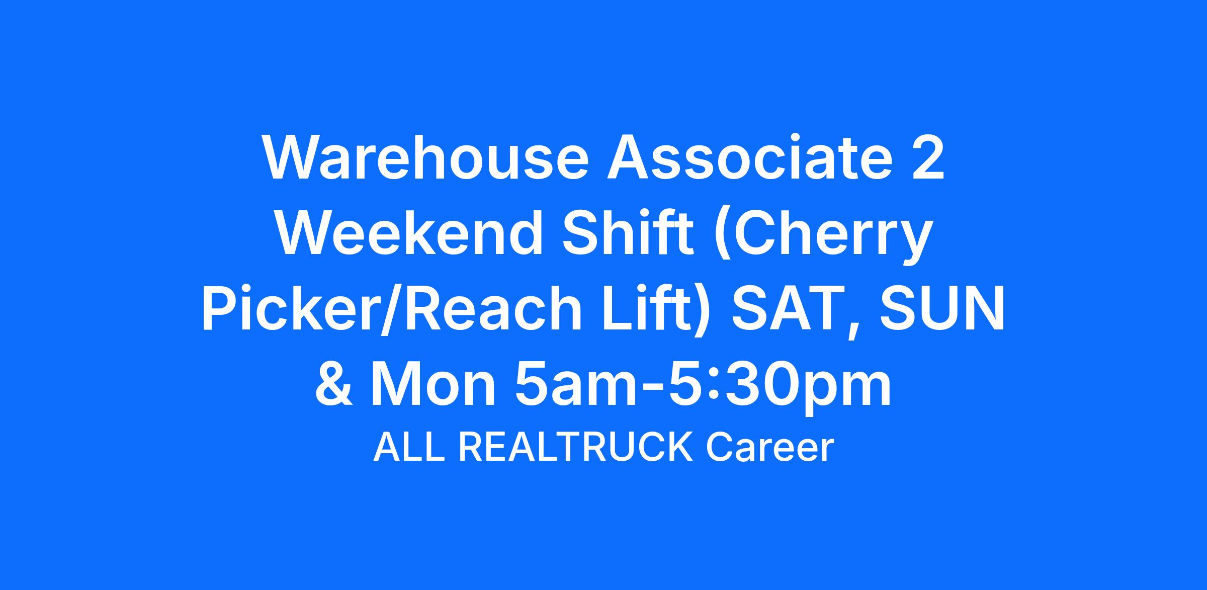 Distribution Warehouse Associate with Cherry Picker, Reach Lift and EPJ experience