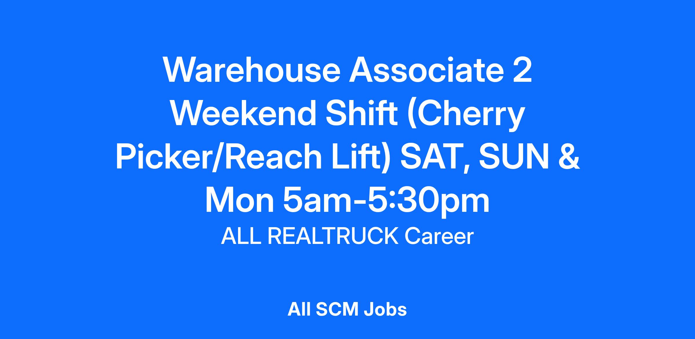The Warehouse Associate 2 will perform tasks associated with shipping, receiving, and the material handling process at RealTruck, including receiving shipments, stocking, inventory control, picking, packing, staging orders and shipping products, primarily using Cherry Picker, Reach Lift and EPJ powered industrial trucks.