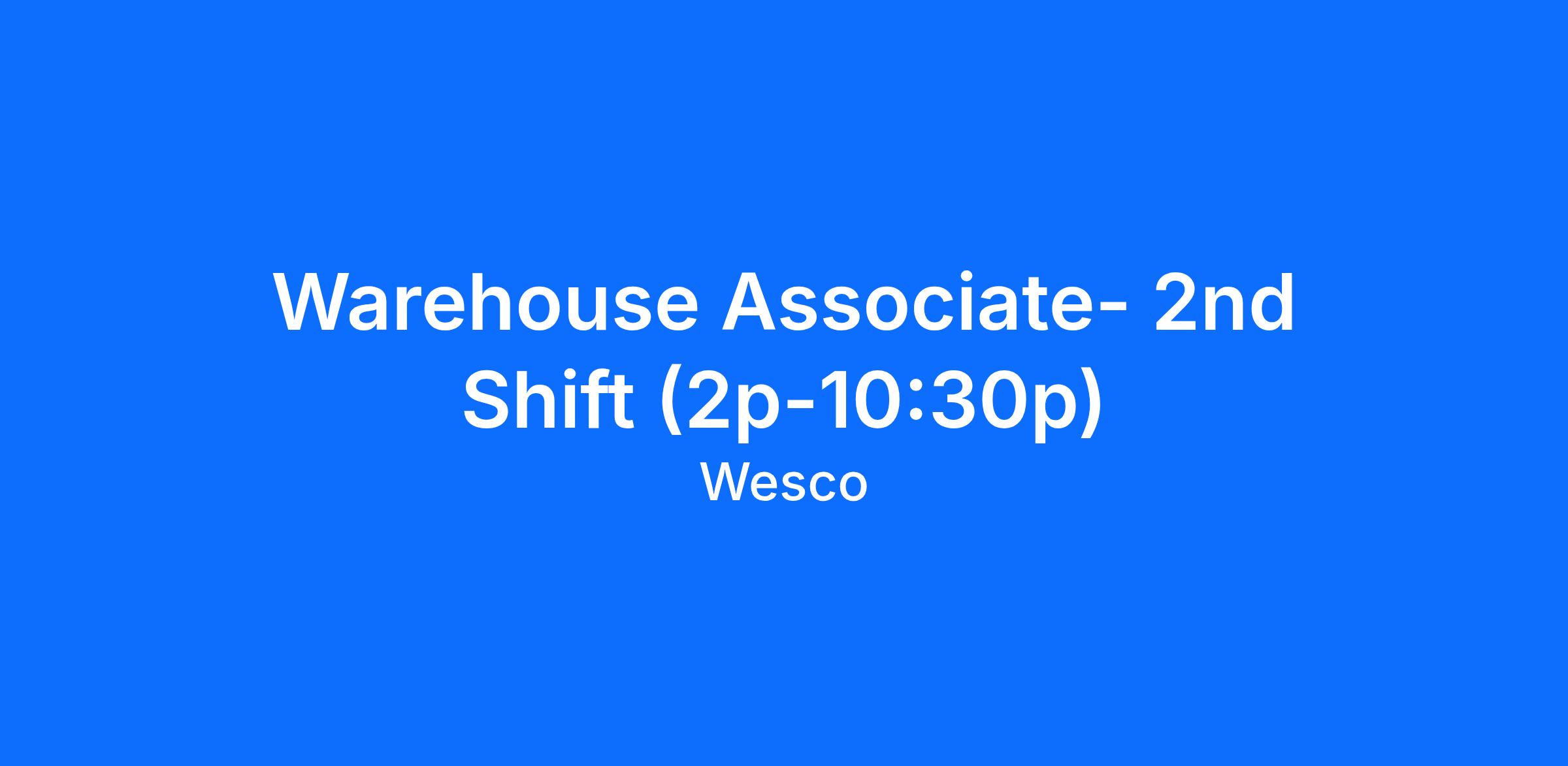 Launch your career! We are hiring immediately for Warehouse workers! We will teach you about distribution and supply chain techniques valued by Fortune 250 companies around the globe. We are Wesco! We enable the connected world – you help turn on the lights.