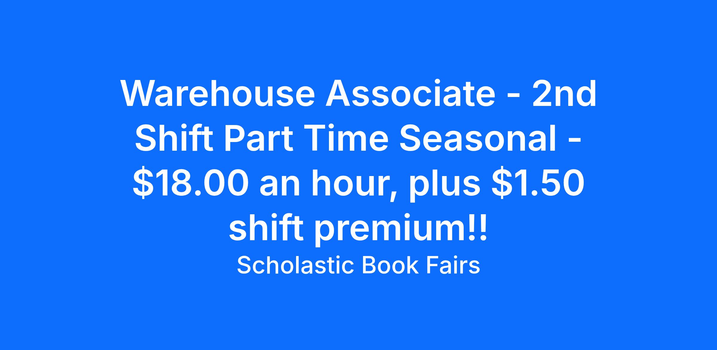 Pay Rate: $18.00 an hours, plus $$1.50 shift premium pay
