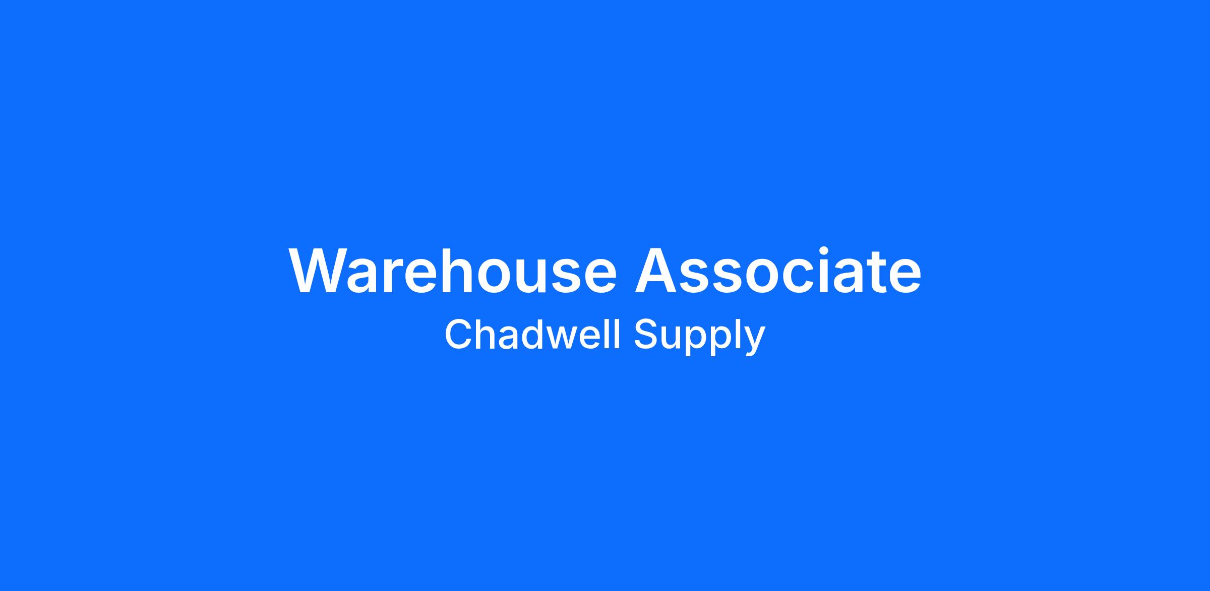 Chadwell Supply is a successful family-owned maintenance supply company with 29 Branches Nationwide. We are currently looking for an enthusiastic, energetic, and detail-minded individual to work as a Chadwell Supply Warehouse Associate.