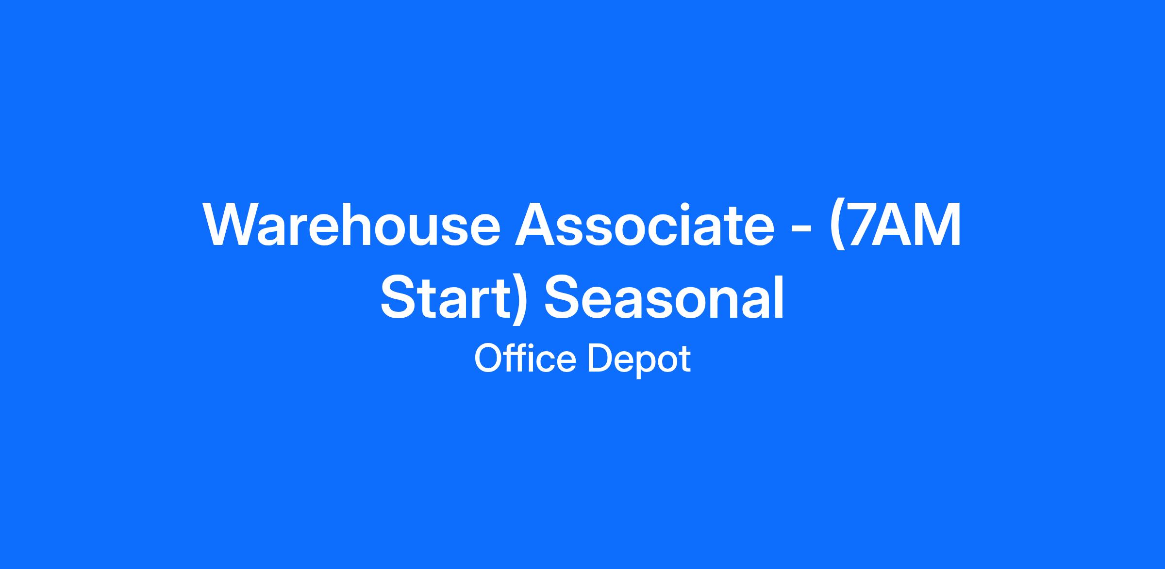 Needed Multiple Associates for 7AM Start Time, Monday - Friday - Fulltime Seasonal Roles