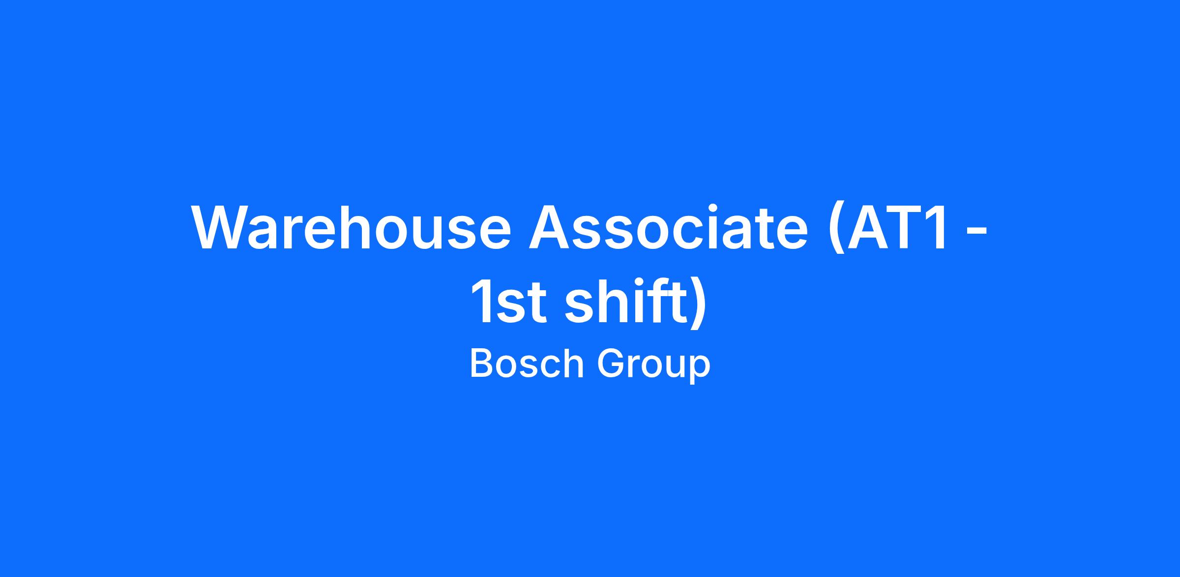 *Bosch adheres to Federal, State, and Local laws regarding drug-testing. Employment is contingent upon the successful completion of a drug screen and background check. Candidates who have been offered the position must pass both screenings before their start date.