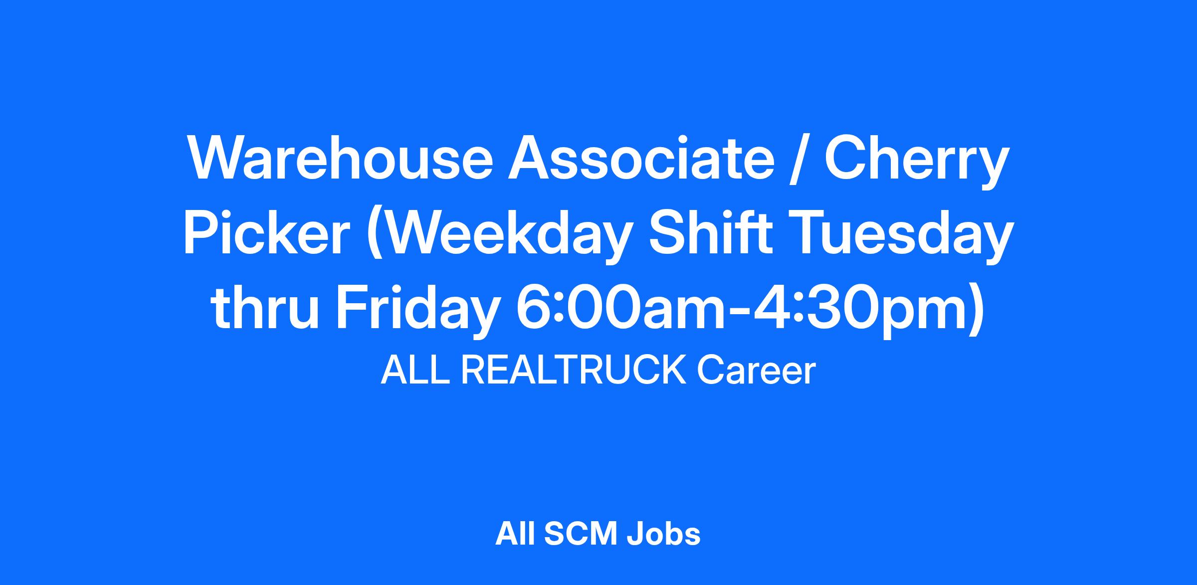 The Warehouse Associate 2 will perform tasks associated with shipping, receiving, and the material handling process at RealTruck, including receiving shipments, stocking, inventory control, picking, packing, staging orders and shipping products, primarily using powered industrial trucks. Operates Cherry Picker, Sit-Down Forklift, Reach Truck and EPJ. Uses RF Scanners to receive, pick and ship orders daily.