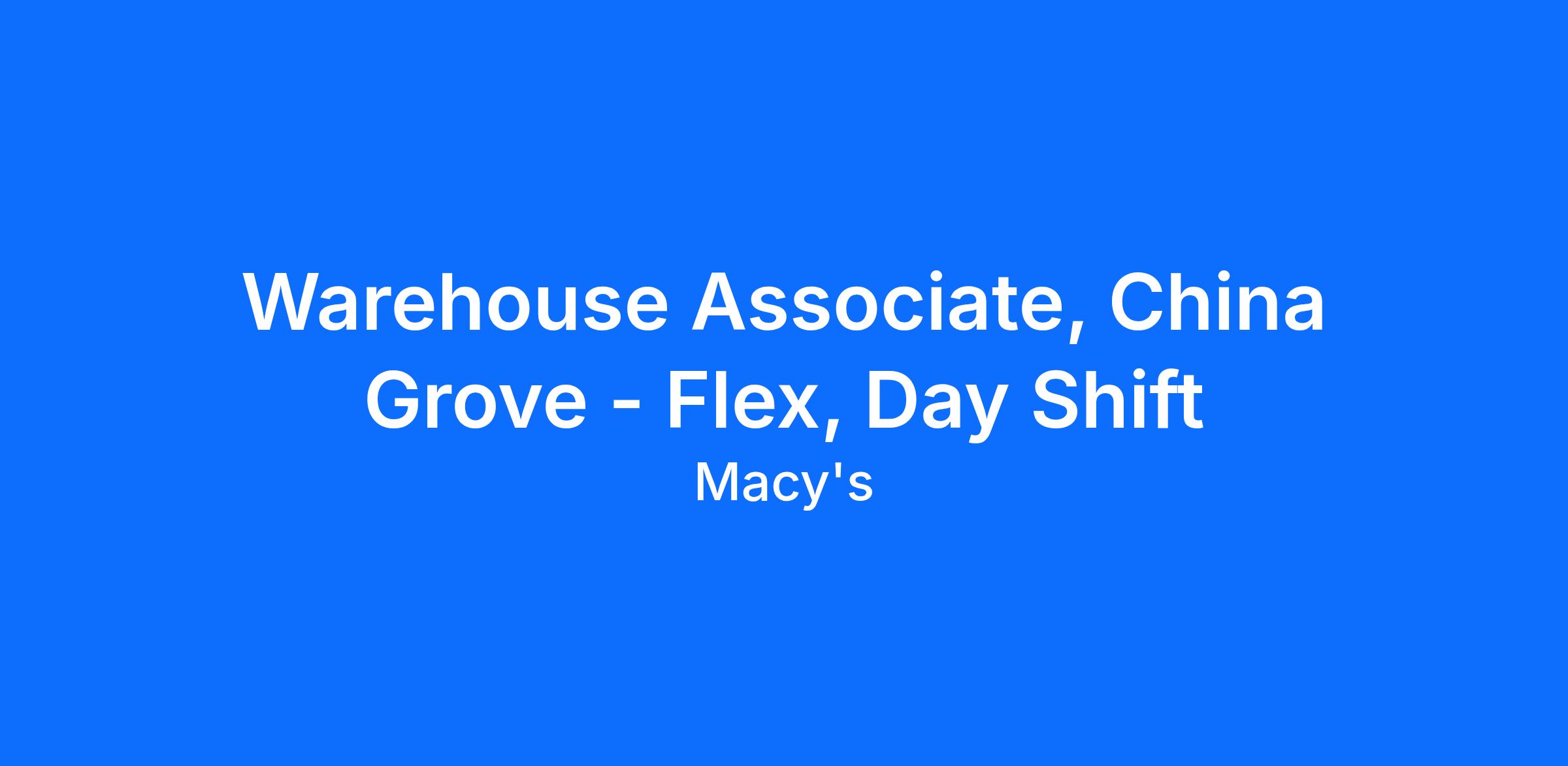 Warehouse Associate, China Grove - Flex, Day Shift