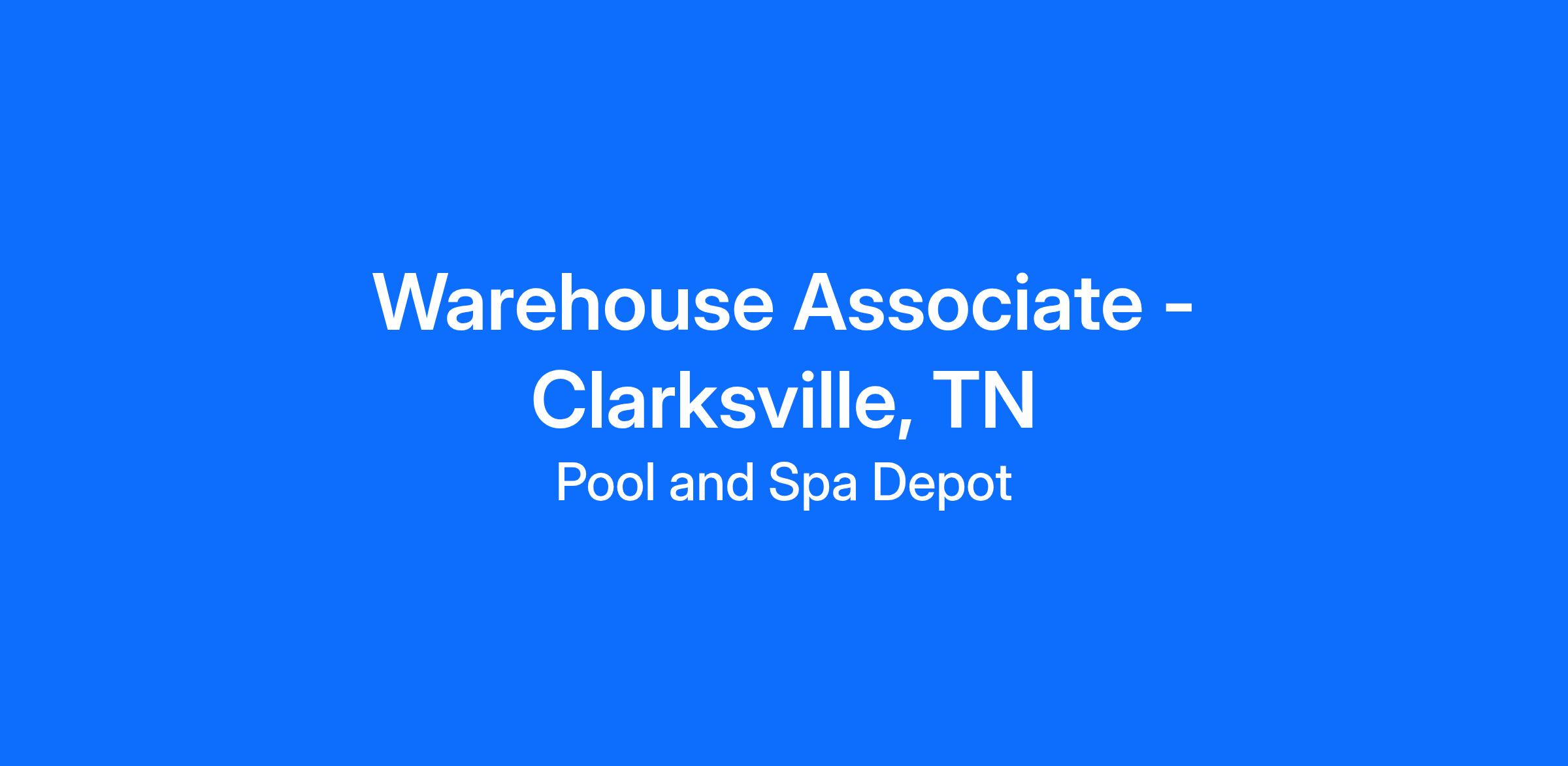 Join the dynamic team at Pool and Spa Depot as a Warehouse Associate in our Clarksville, TN location and dive into an exciting career! Whether you're loading and unloading inventory or maintaining organization, every moment on the job is fulfilling.