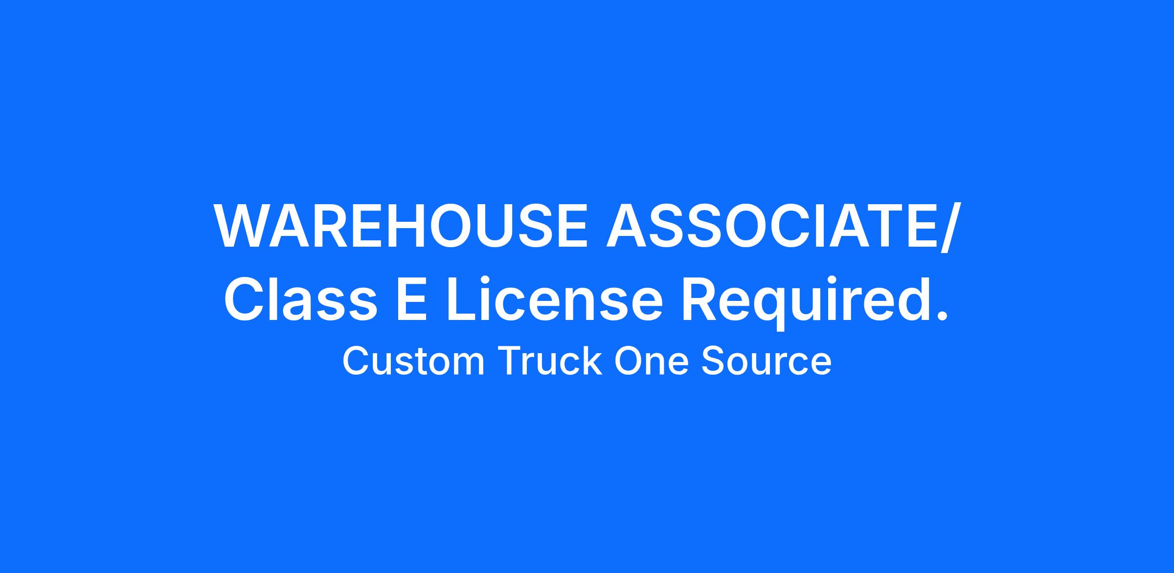 WAREHOUSE ASSOCIATE/ Class E License Required.