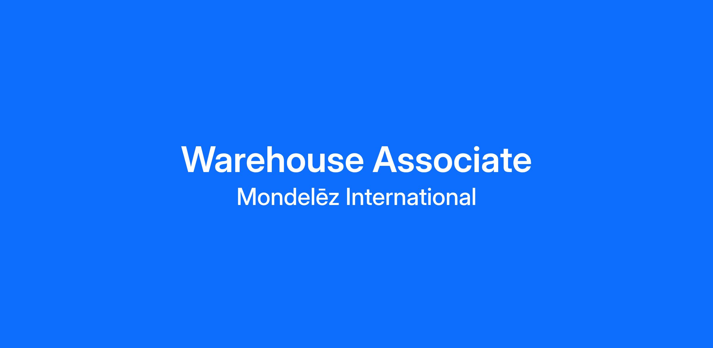 Join Mondelez International/ NABISCO as a Warehouse Associate located in Manassas to help us drive the future of snacking!