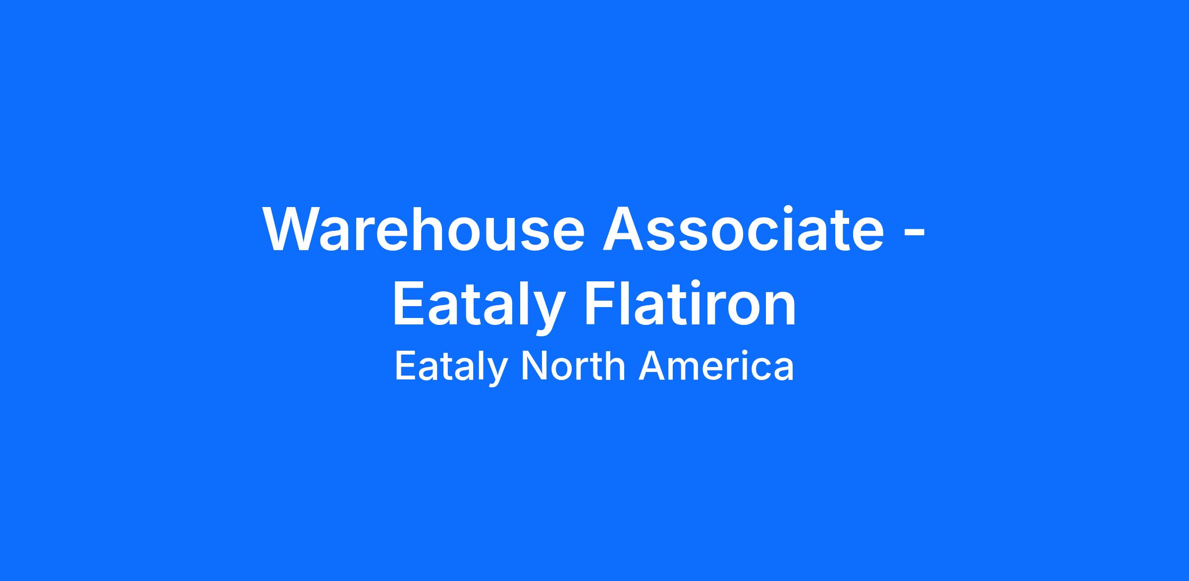 A Warehouse Associate assists the Warehouse Manager with the day-to-day operations of the department to align with Eataly’s targets, mission and policies. A Warehouse Associate ensures accuracy of all deliveries to the warehouse entrance and maintains overall efficient performance. Reports to the Warehouse Manager.
