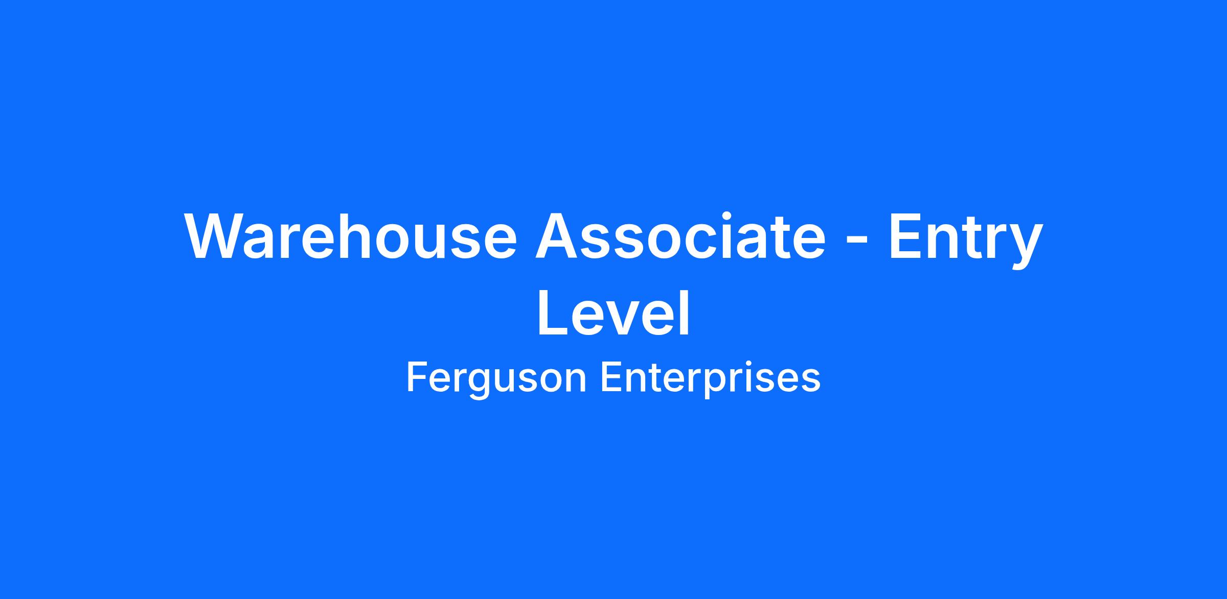 Ferguson is currently seeking an entry level Warehouse Associate to join our team!
