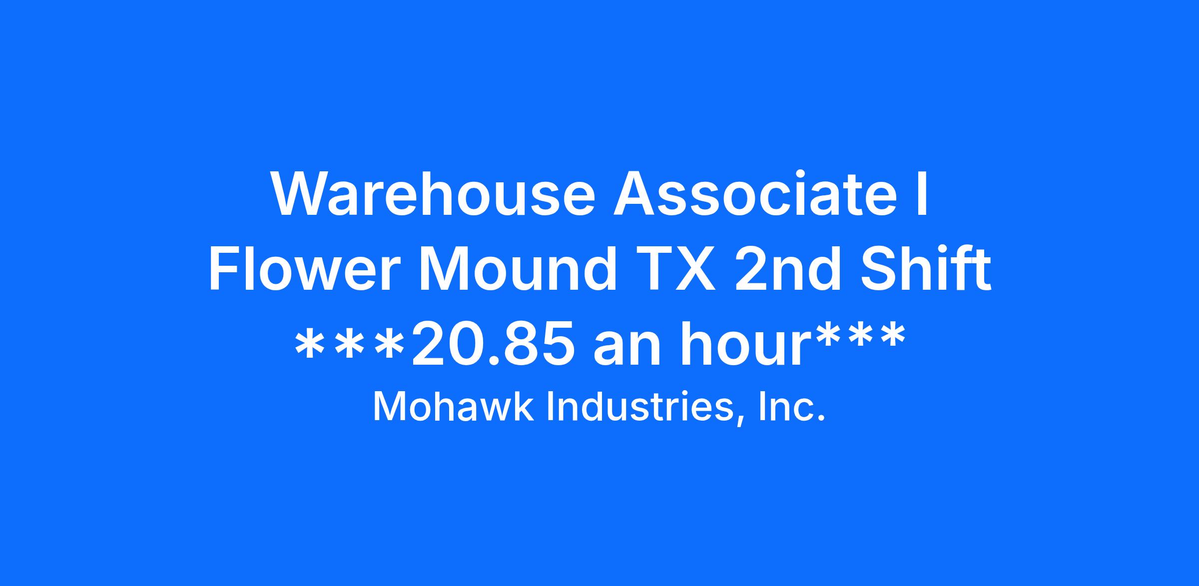Mohawk Industries, Inc. is an Equal Opportunity Employer including disability/veteran committed to an inclusive workplace and a proud Drugs Don’t Work participant.
