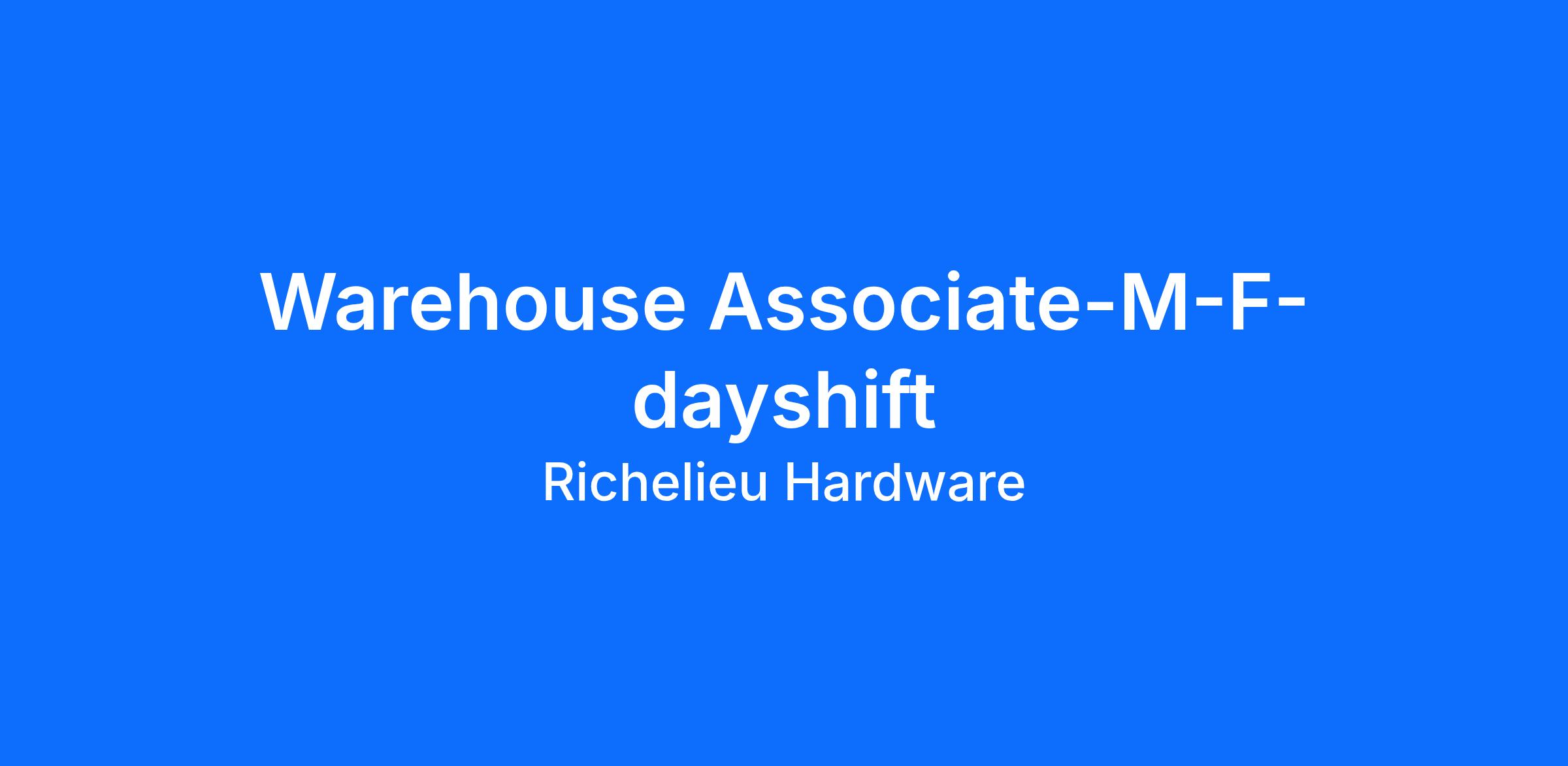 We are currently seeking a Warehouse Associate to join our team of professionals.