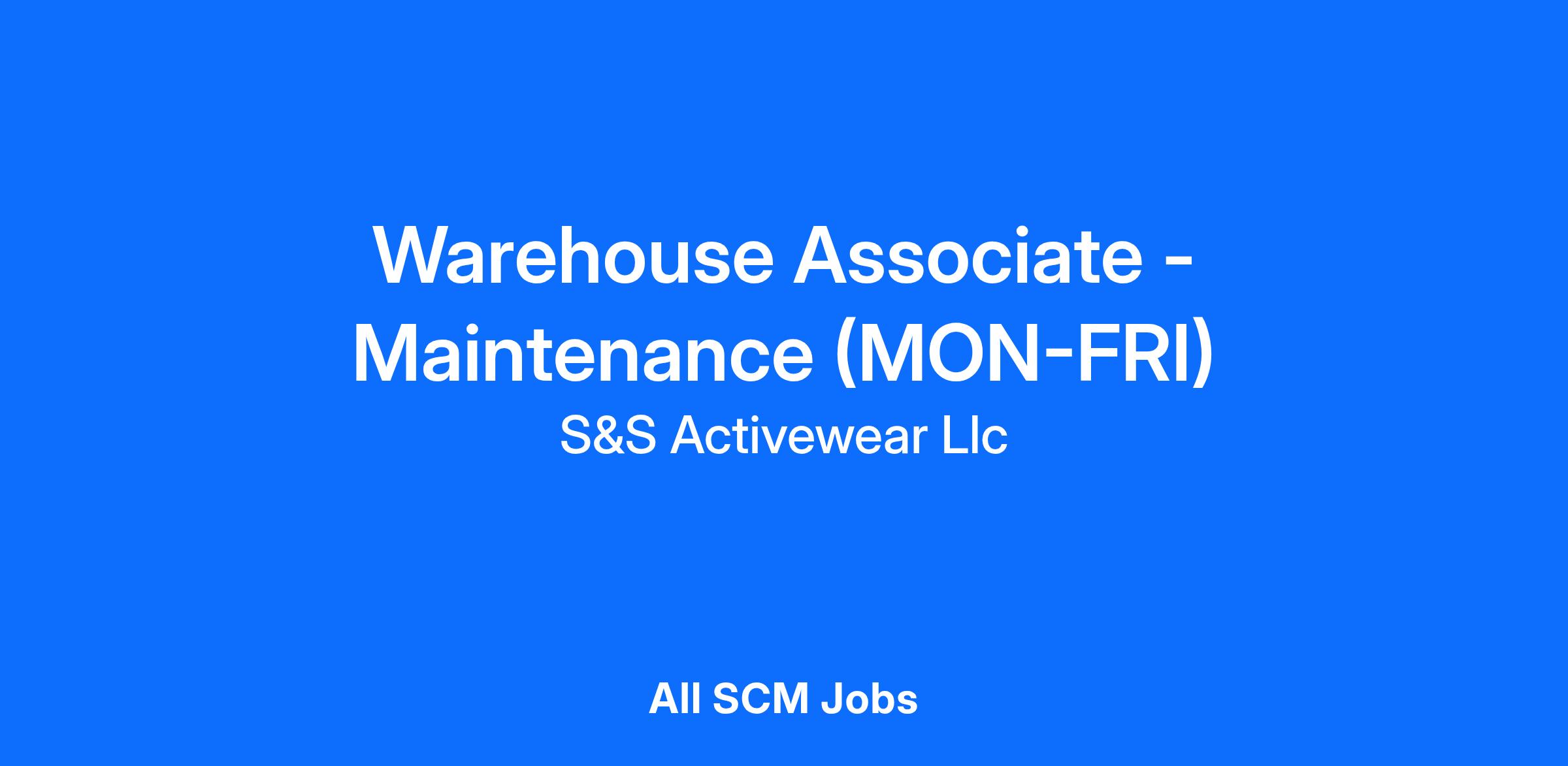 S&S Activewear welcomes people of all backgrounds and experiences and are committed to creating a diverse culture and supporting human growth. We are proud to be an equal opportunity employer and is committed to providing equal opportunity for all employees and applicants. We conduct business without regard to sex, race, creed, color, religion, marital status, national origin, citizenship status, age, pregnancy, sexual orientation, gender identity or expression, genetic information, disability, military status, status as a veteran, or any other protected characteristic. Our policy is to recruit, hire, train, promote, assign, transfer, and terminate employees based on their own ability, achievement, experience and conduct and other legitimate business reasons. S&S participates in E-Verify and will provide the federal government with your Form I-9 information to confirm you are authorized to work in the U.S. This job offer is contingent upon the completion of a satisfactory background check.