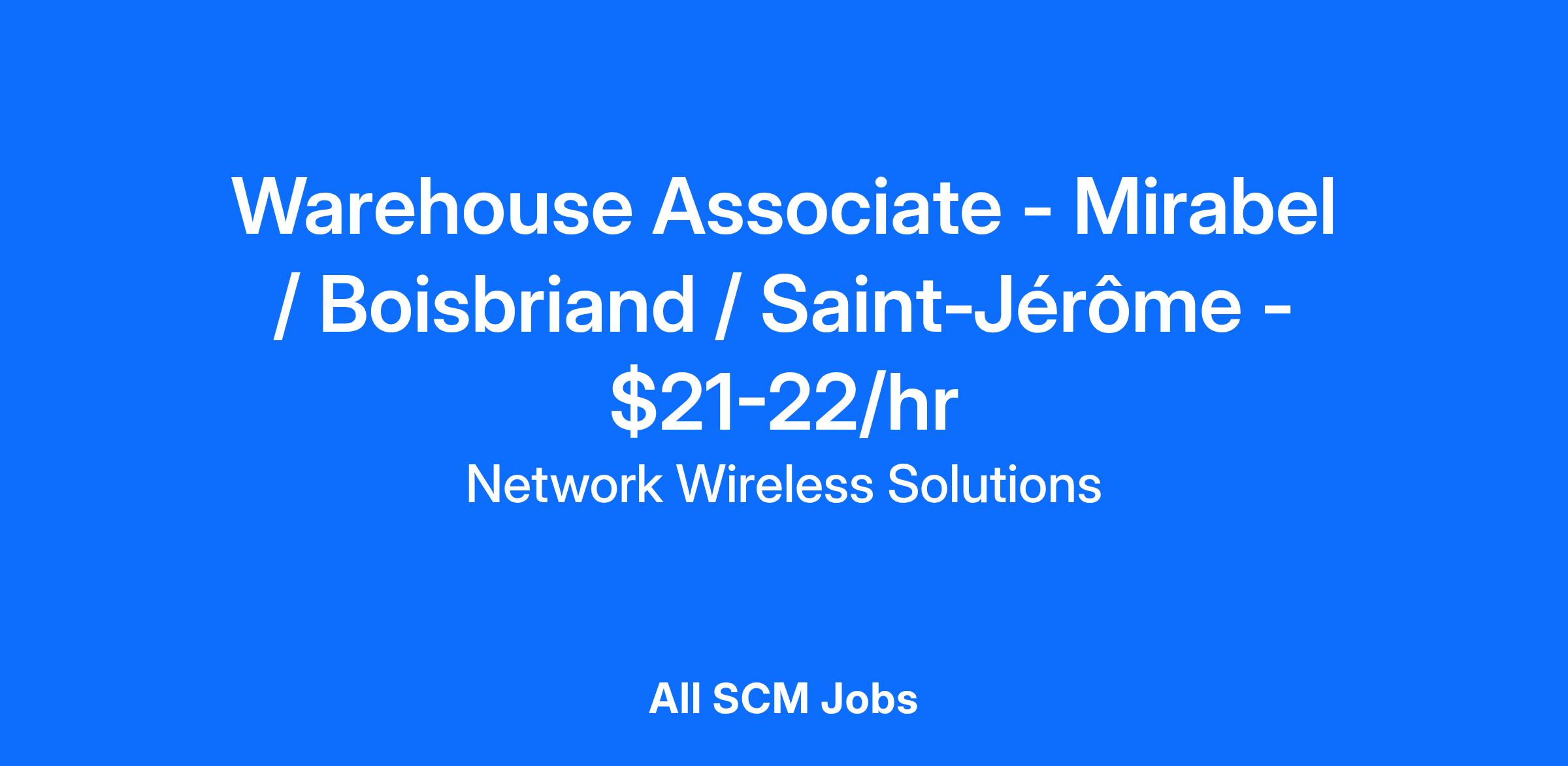 Warehouse Associate - Mirabel / Boisbriand / Saint-Jérôme - $21-22/hr
