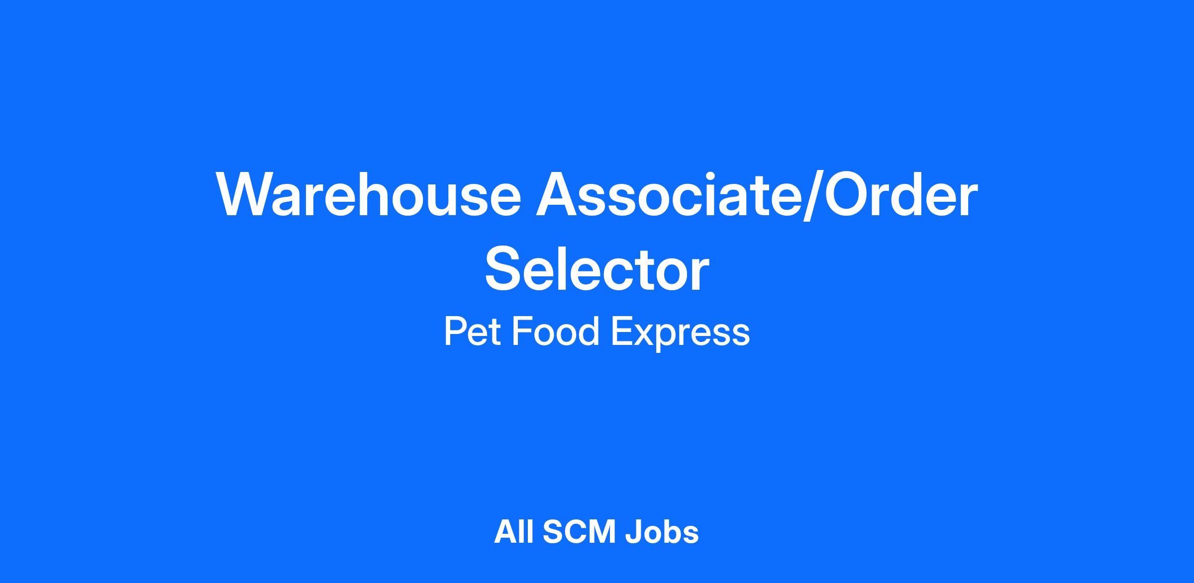 Pet Food Express is seeking Warehouse Associates that are team players and have a positive attitude to join our new 197,000 sq ft. Distribution Center in Oakley, CA.