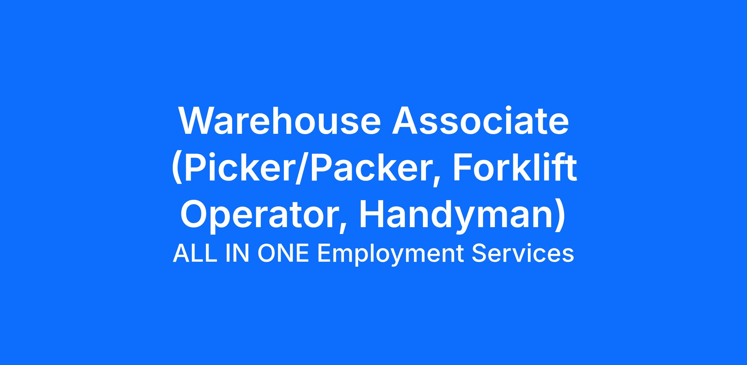 Job Title: Warehouse Associate (Picker/Packer, Forklift Operator, Handyman) – Immediate Hire